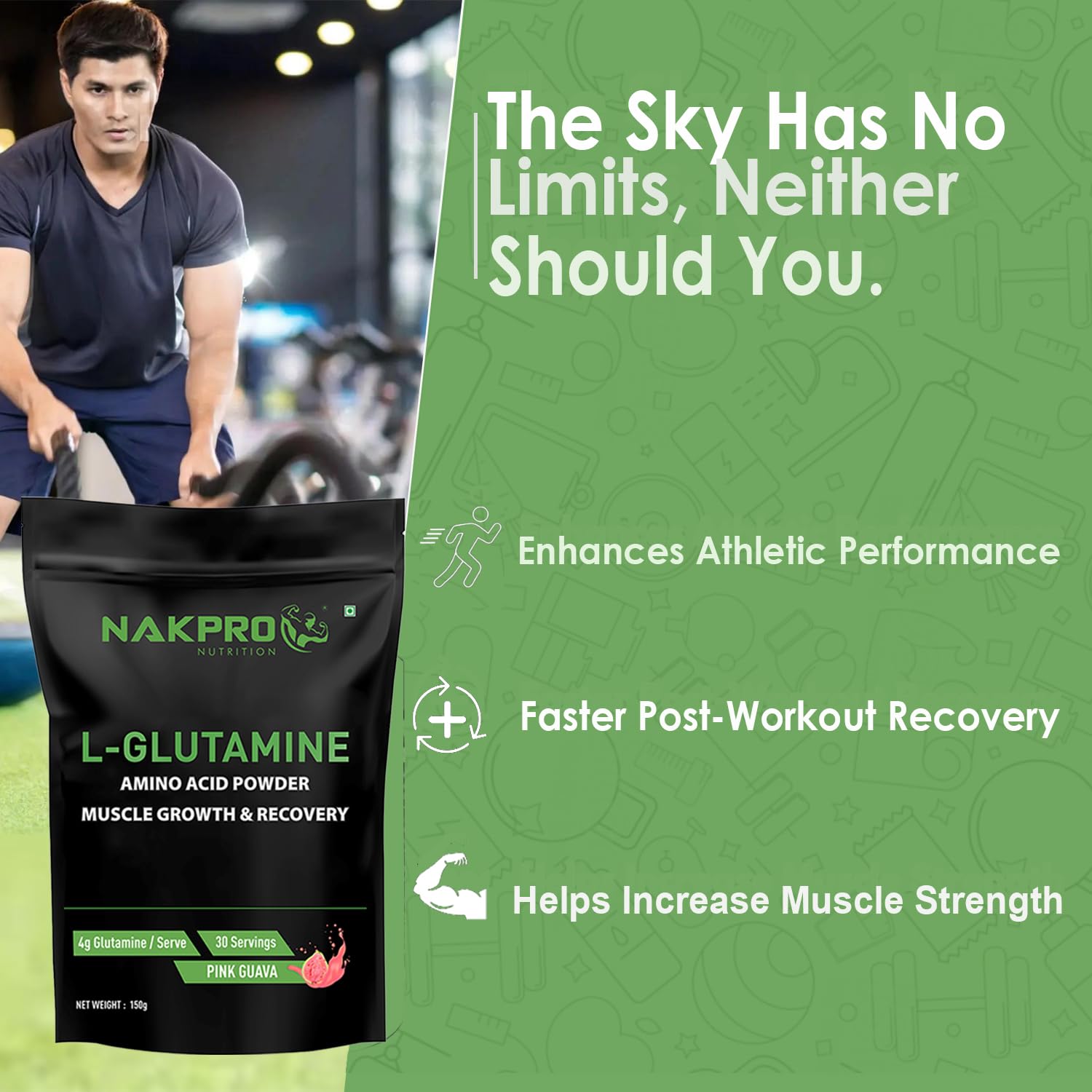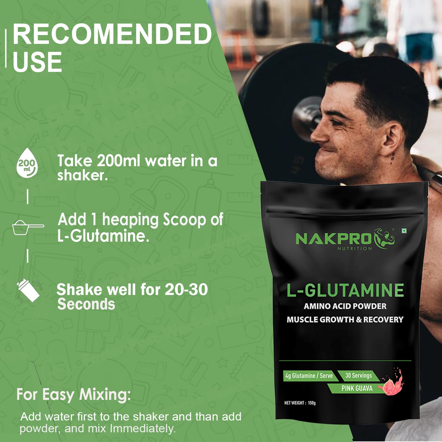 Nakpro L-Glutamine Powder | 4g Glutamine Per Serving, 3 Servings | Post Workout Amino Acid Supplement for Muscle Growth and Recovery (Pink Guava, 15g)