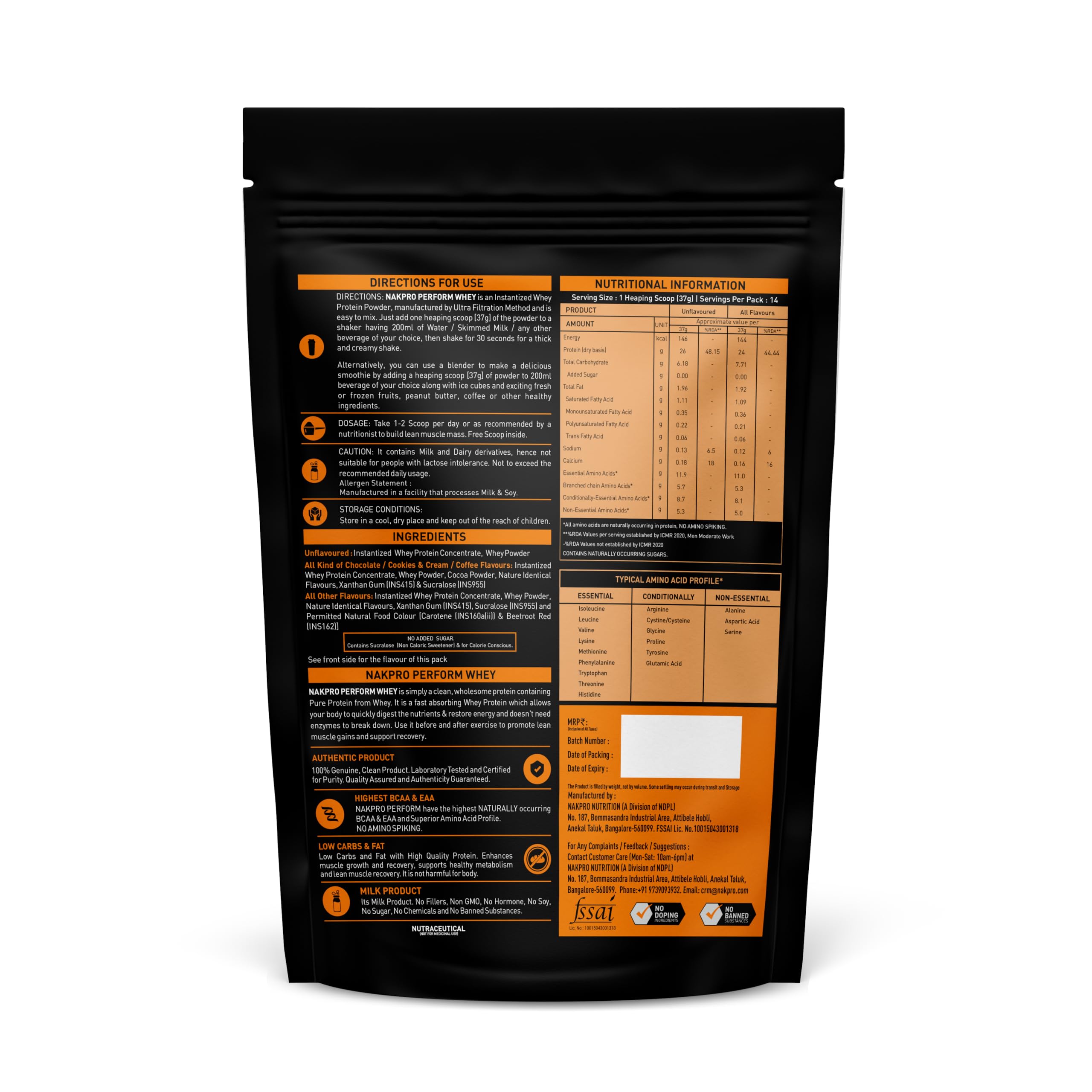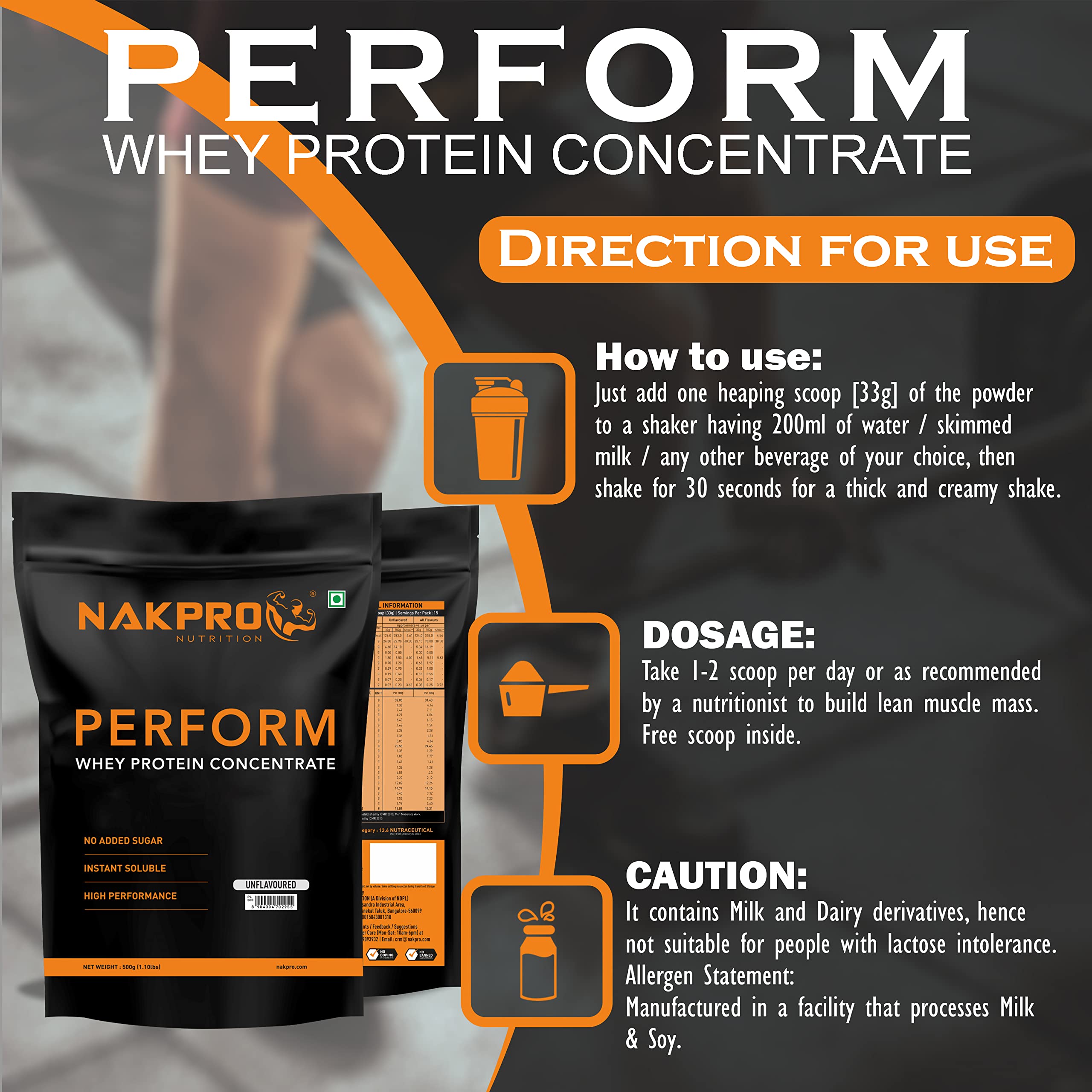 NAKPRO Perform Whey Protein Concentrate 5g Unflavoured | 24g Protein, 5.3g BCAA | Trustified Certified 1% Authentic Supplement Powder & No Adulteration | Fast Absorbing Whey Protein Powder