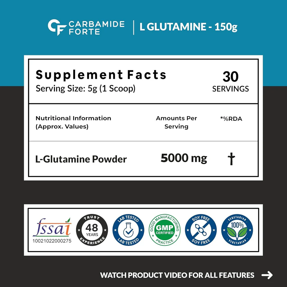 - ✅ 𝗛𝗜𝗚𝗛 𝗣𝗢𝗧𝗘𝗡𝗖𝗬 & 𝗠𝗔𝗫 𝗦𝗧𝗥𝗘𝗡𝗚𝗧𝗛 L 𝗚𝗟𝗨𝗧𝗔𝗠𝗜𝗡𝗘 𝗣𝗢𝗪𝗗𝗘𝗥 𝟓𝟎𝟎𝟎𝗺𝗴: Carbamide Forte L-Glutamine supplement for men post workout for men has 5000 mg per serving which is higher than most other L Glutamine tablets and muscle recovery supplements for men available in the market. It is also absorbed better and increases the body's ability to recover, restore, and protect, which is often deficient in many individuals.