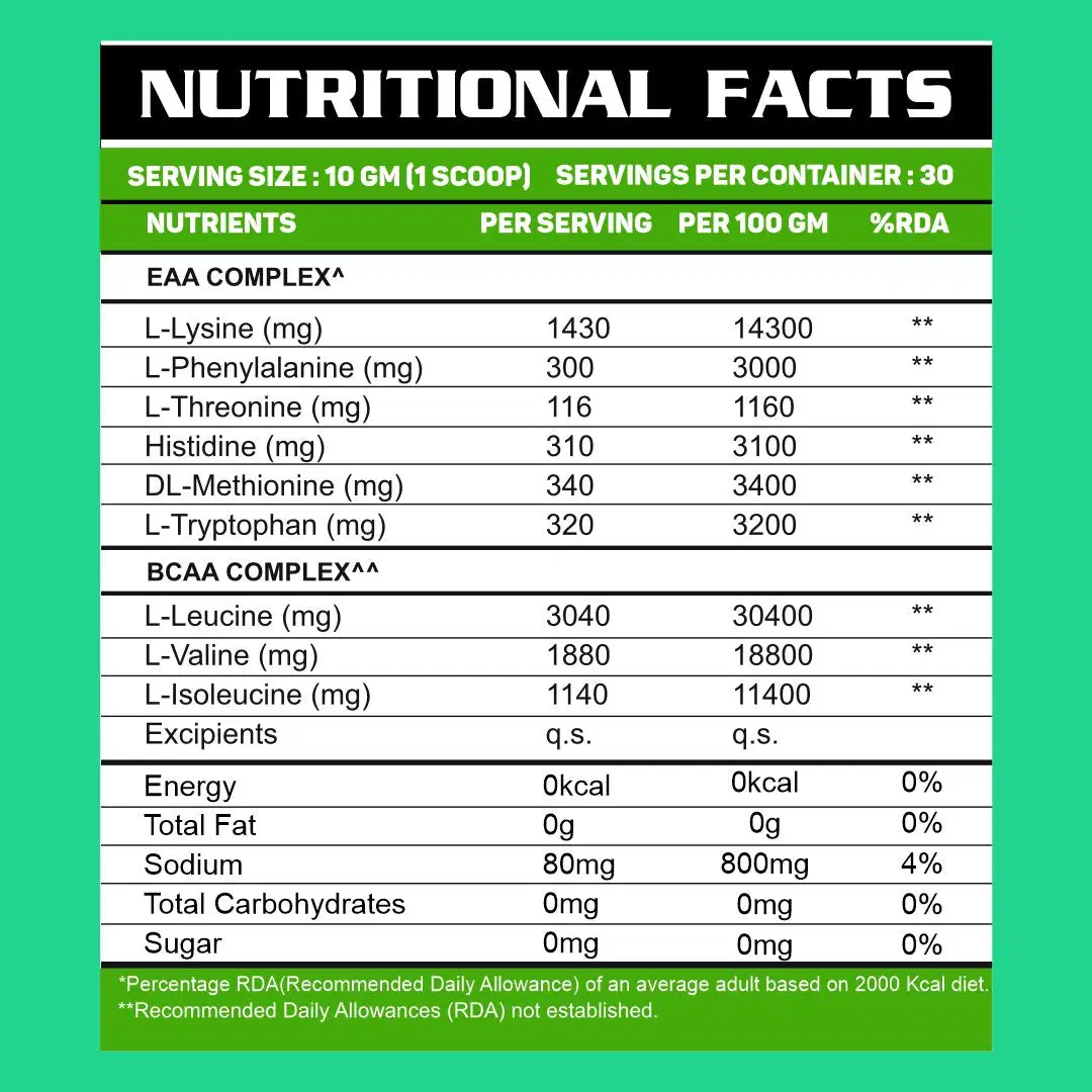 Introducing Ripped Up Nutrition - EAA - ESSENTIAL AMINO ACIDS are best taken on an empty stomach for optimal absorption. Consume one serving (15g) during the workout. There is no need to supplement Essential amino acids (EAAs) on non-exercise days. Focus on a good diet and workout regime.