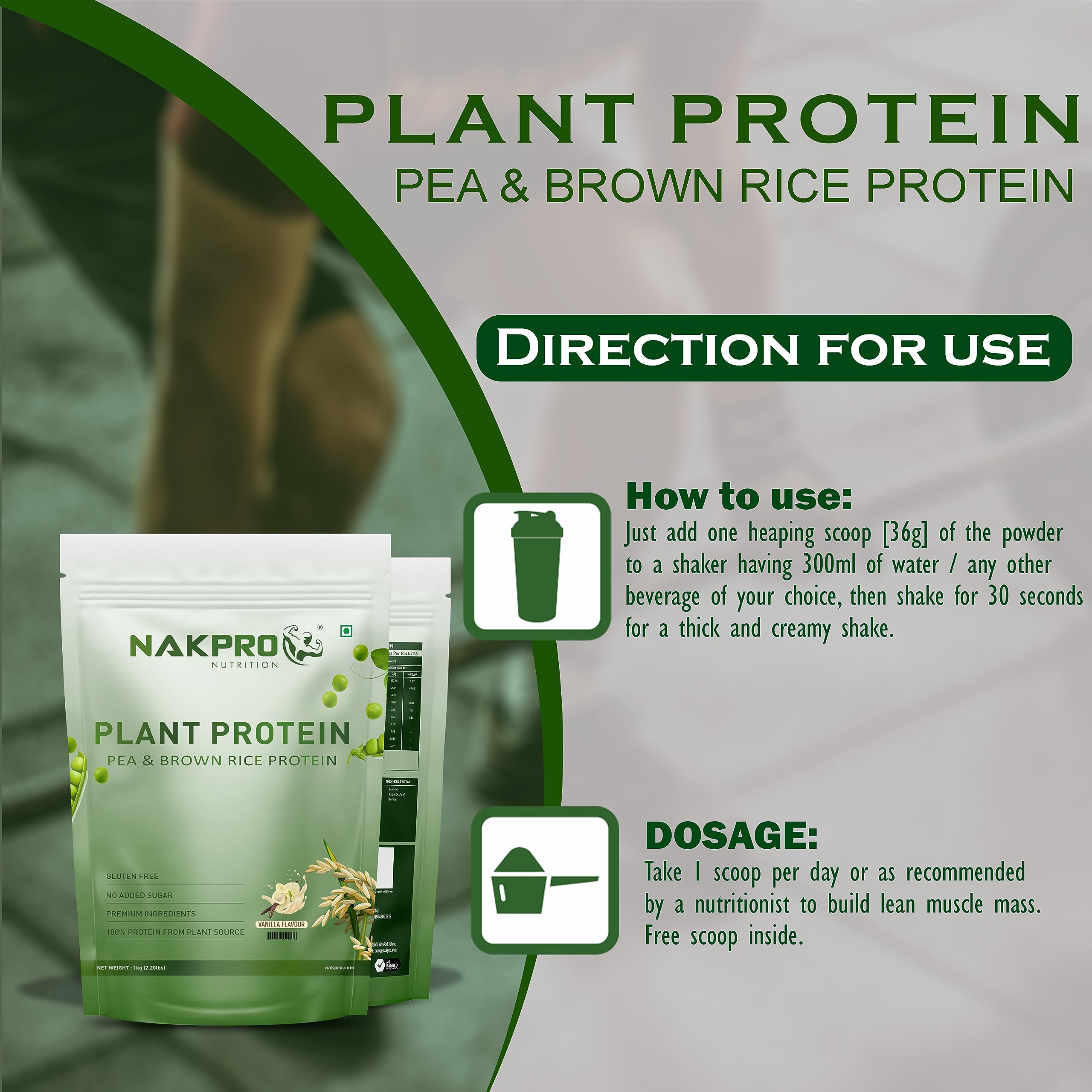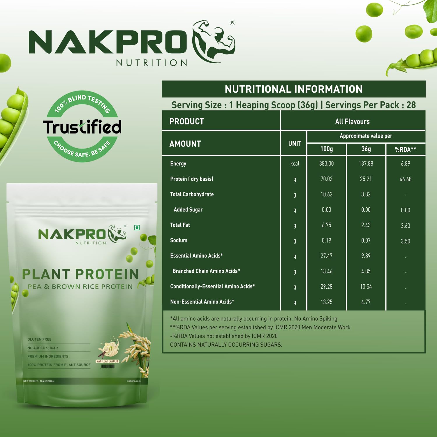 NAKPRO Vegan Plant Protein Powder (Pea & Brown Rice Protein), Vanilla - 2kg | 25.2g Protein, Easy To Digest | All Essential Amino Acids | No Preservatives | No Added Sugar