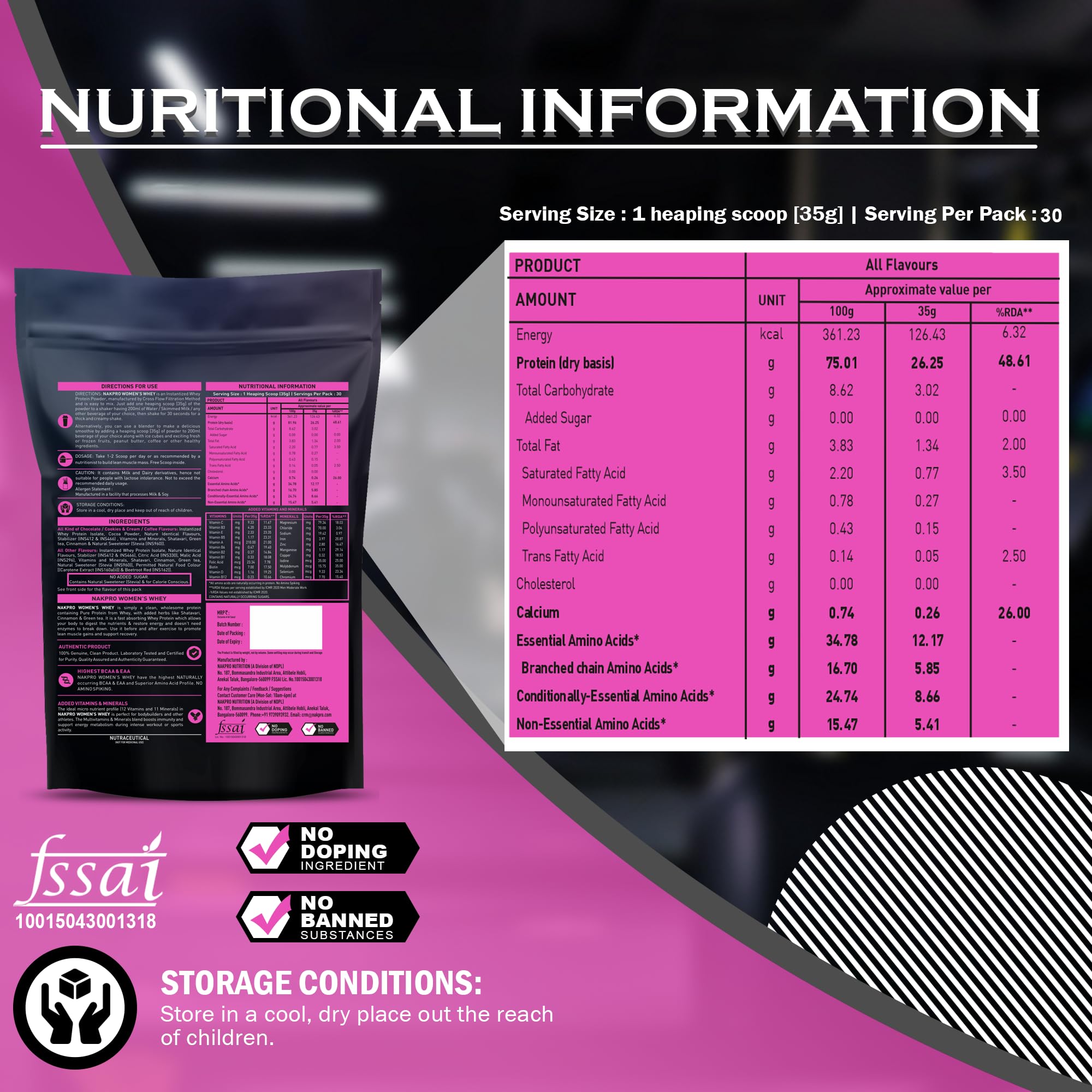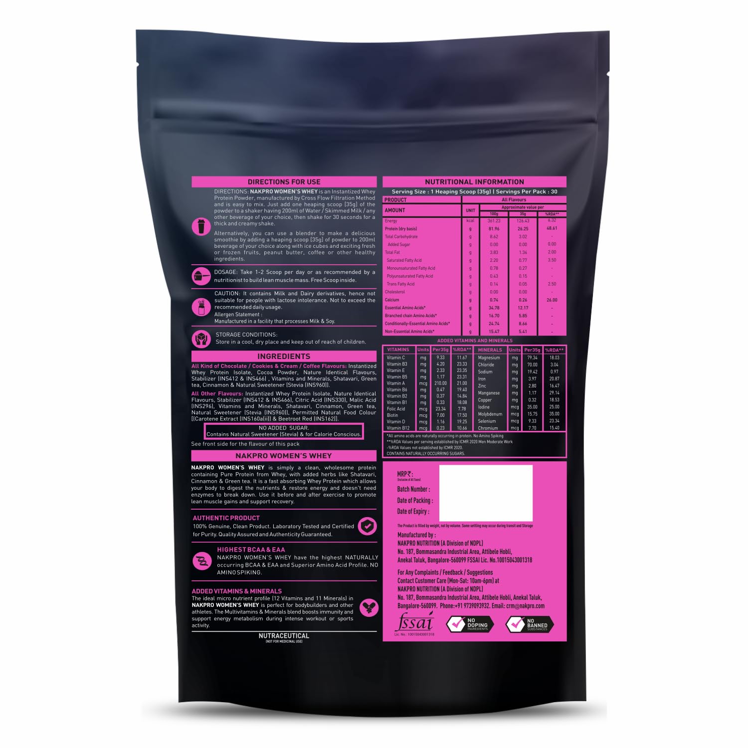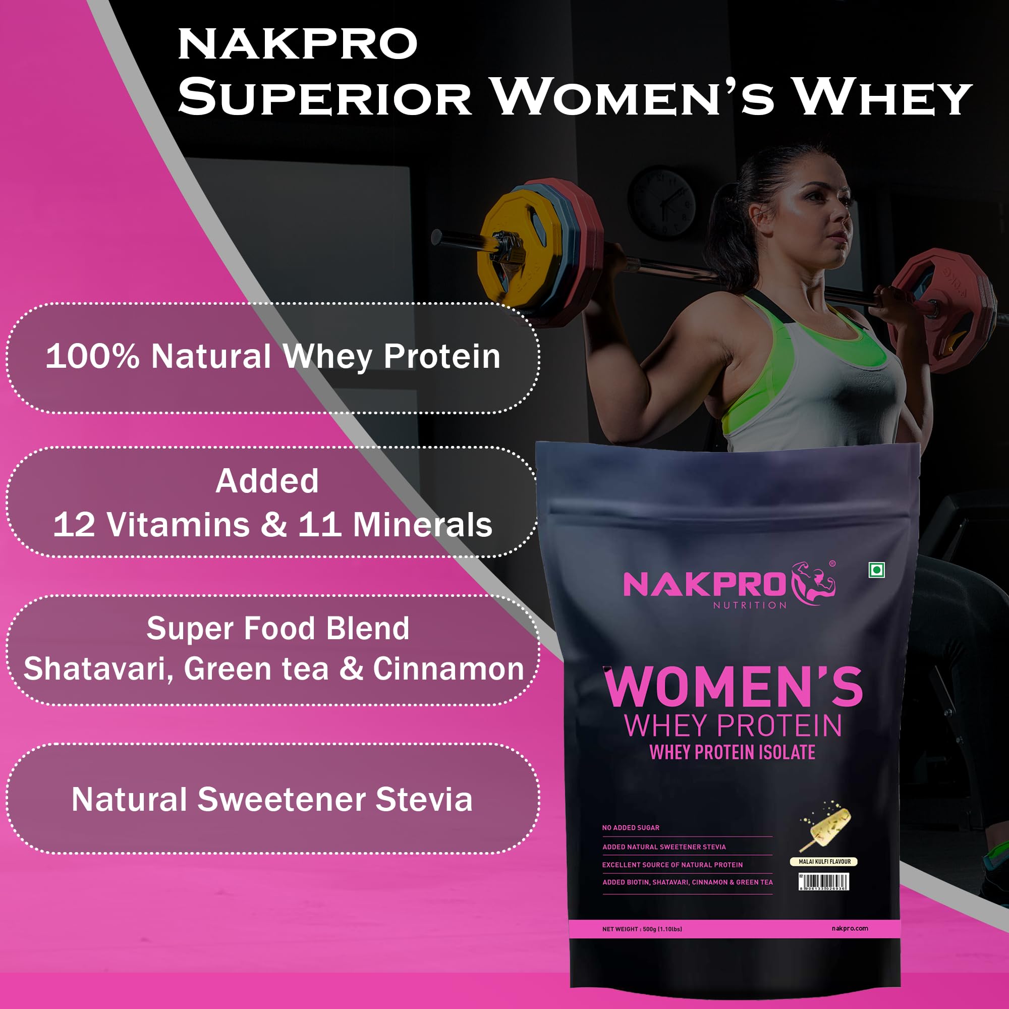 NAKPRO Women Whey Protein Powder | 26.25g Protein, 5.85g BCAA | Muscle Recovery, Lean Muscle, Whey Isolate Protein for Women (1 Kg, Malai Kulfi)