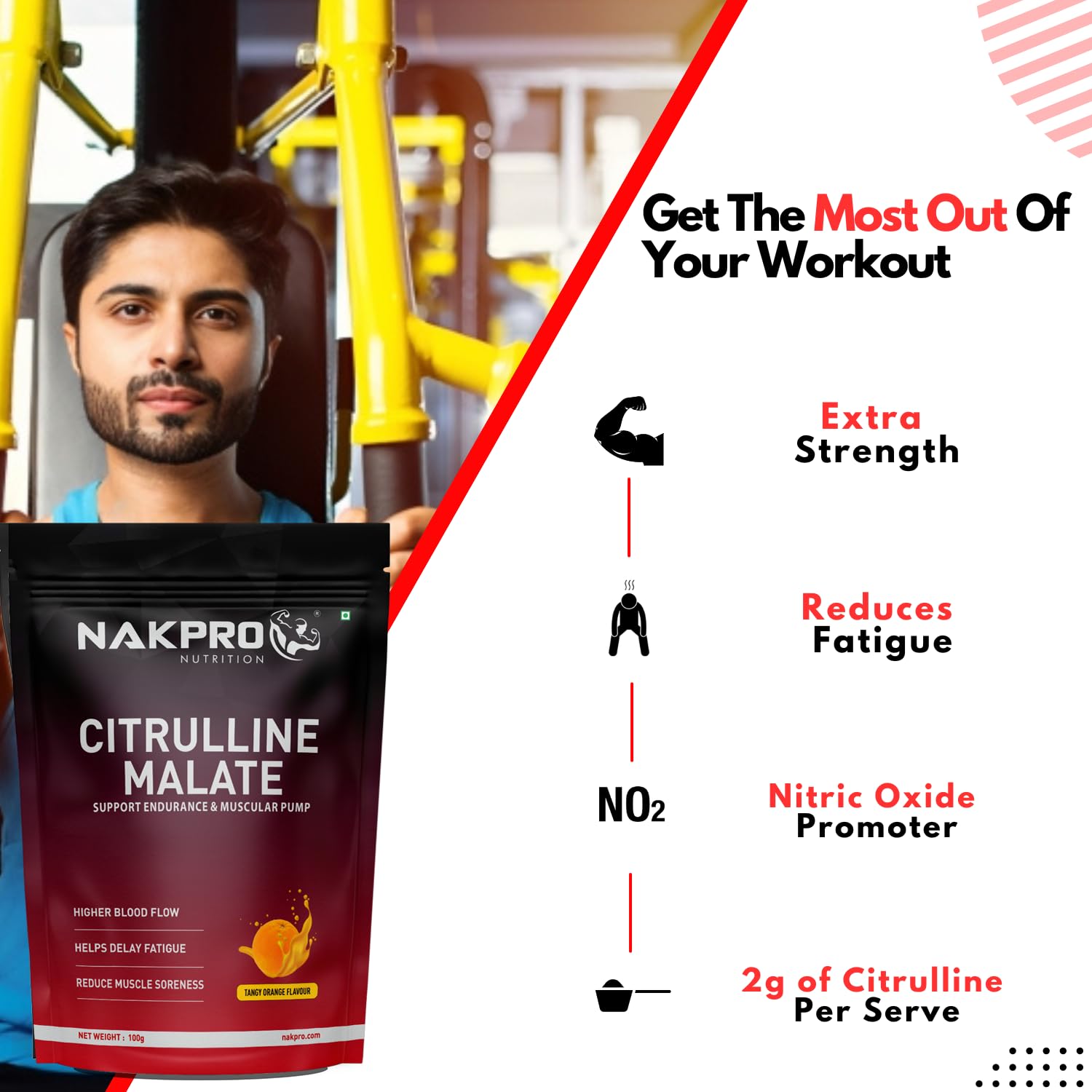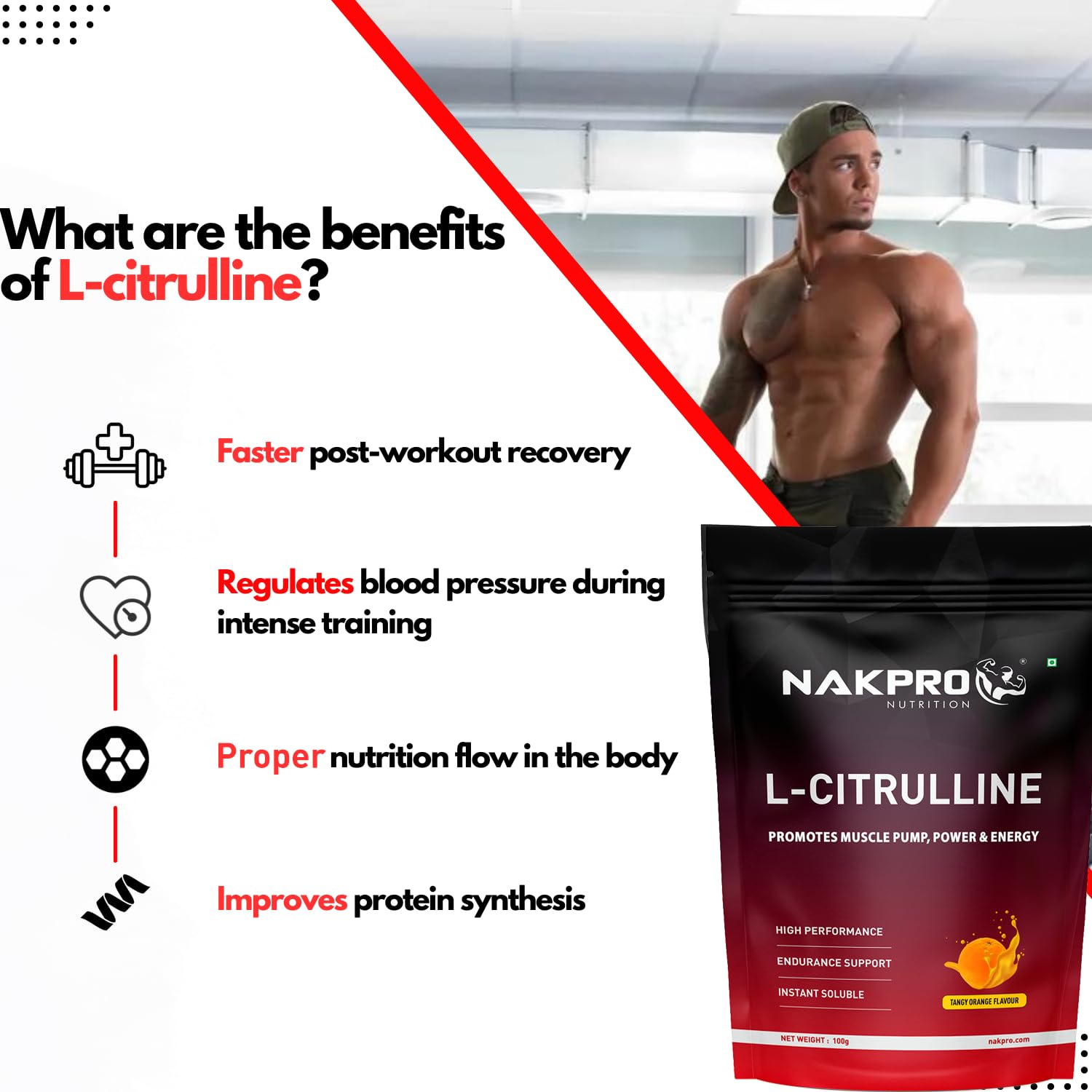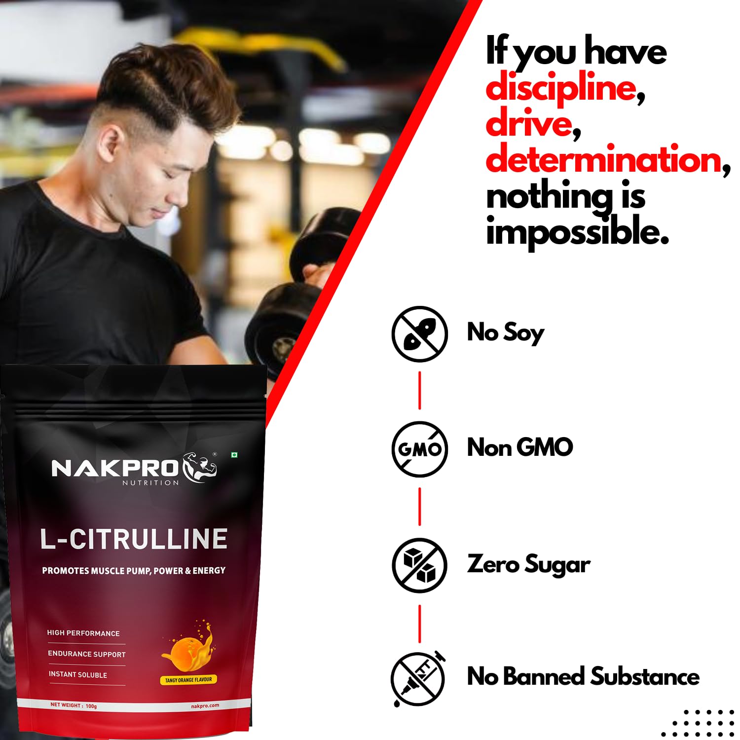 NAKPRO Nutrition Pure L-Citrulline Powder, Boosts Nitric oxide & Muscle growth (Tangy Orange, 1g)