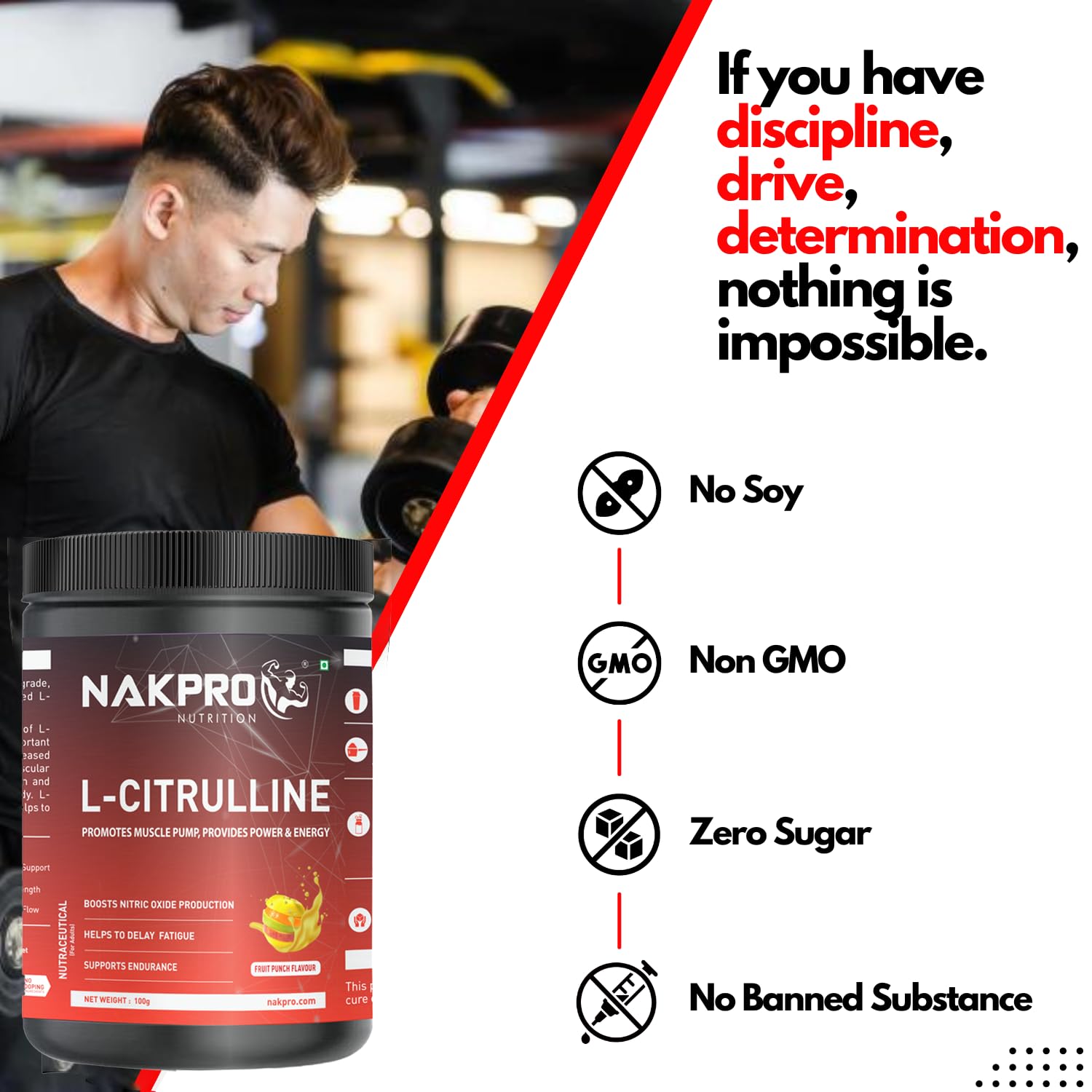 NAKPRO Pure L-Citrulline Powder- Jar, Boosts Nitric oxide & Muscle growth for men & women (Fruit Punch, 1g)