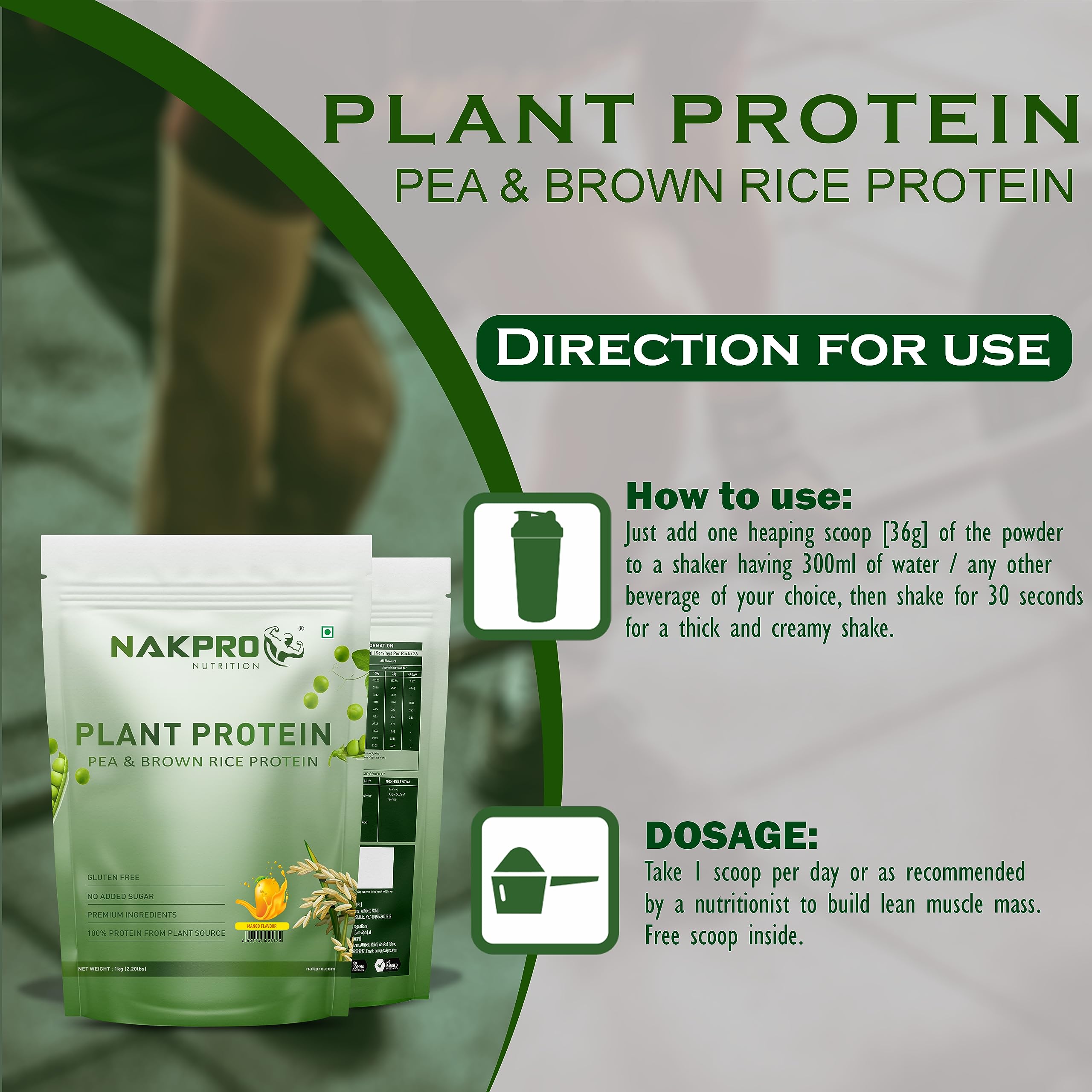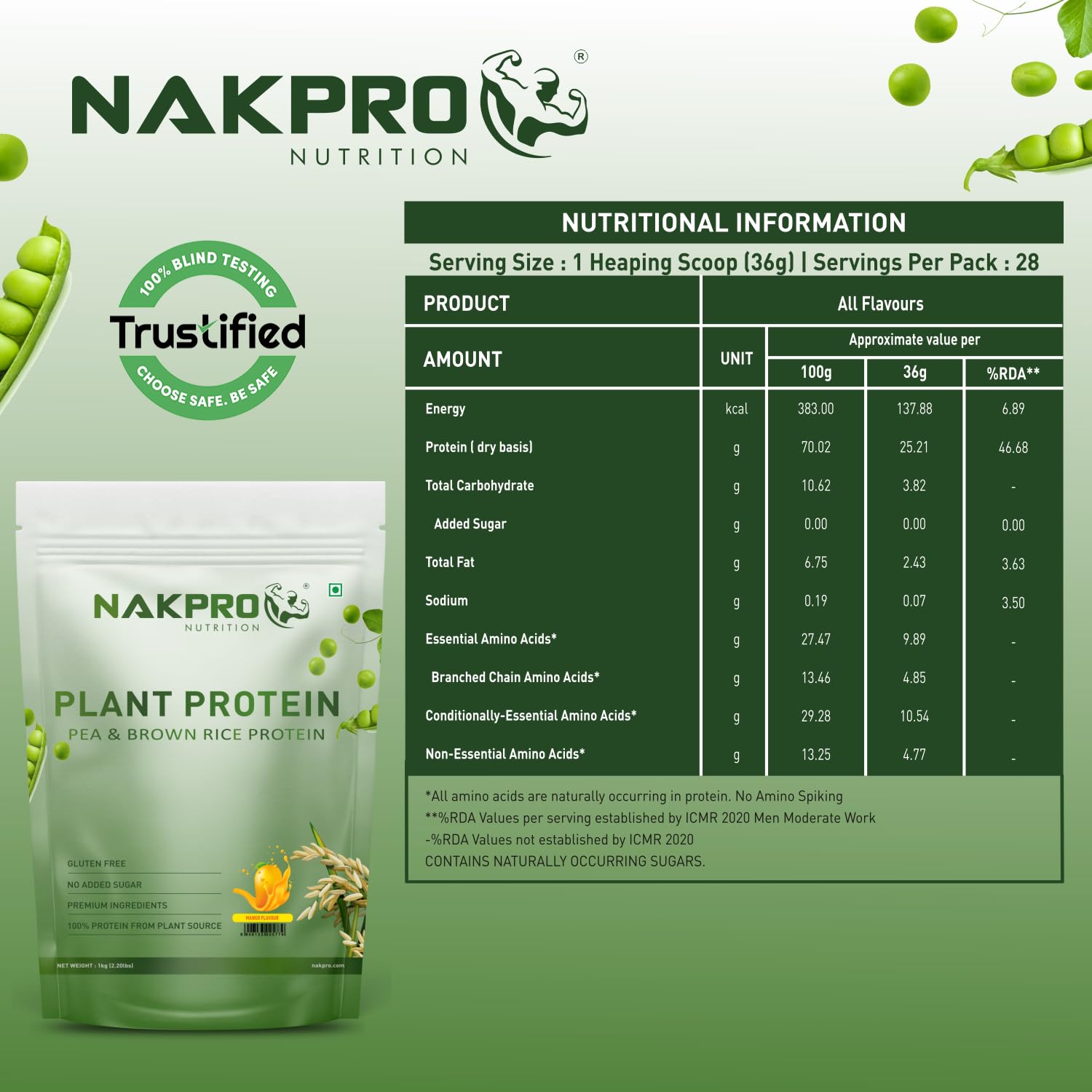 NAKPRO Vegan Plant Protein Powder (Pea & Brown Rice Protein), Mango - 2kg | 25.2g Protein, Easy To Digest | All Essential Amino Acids | No Preservatives | No Added Sugar