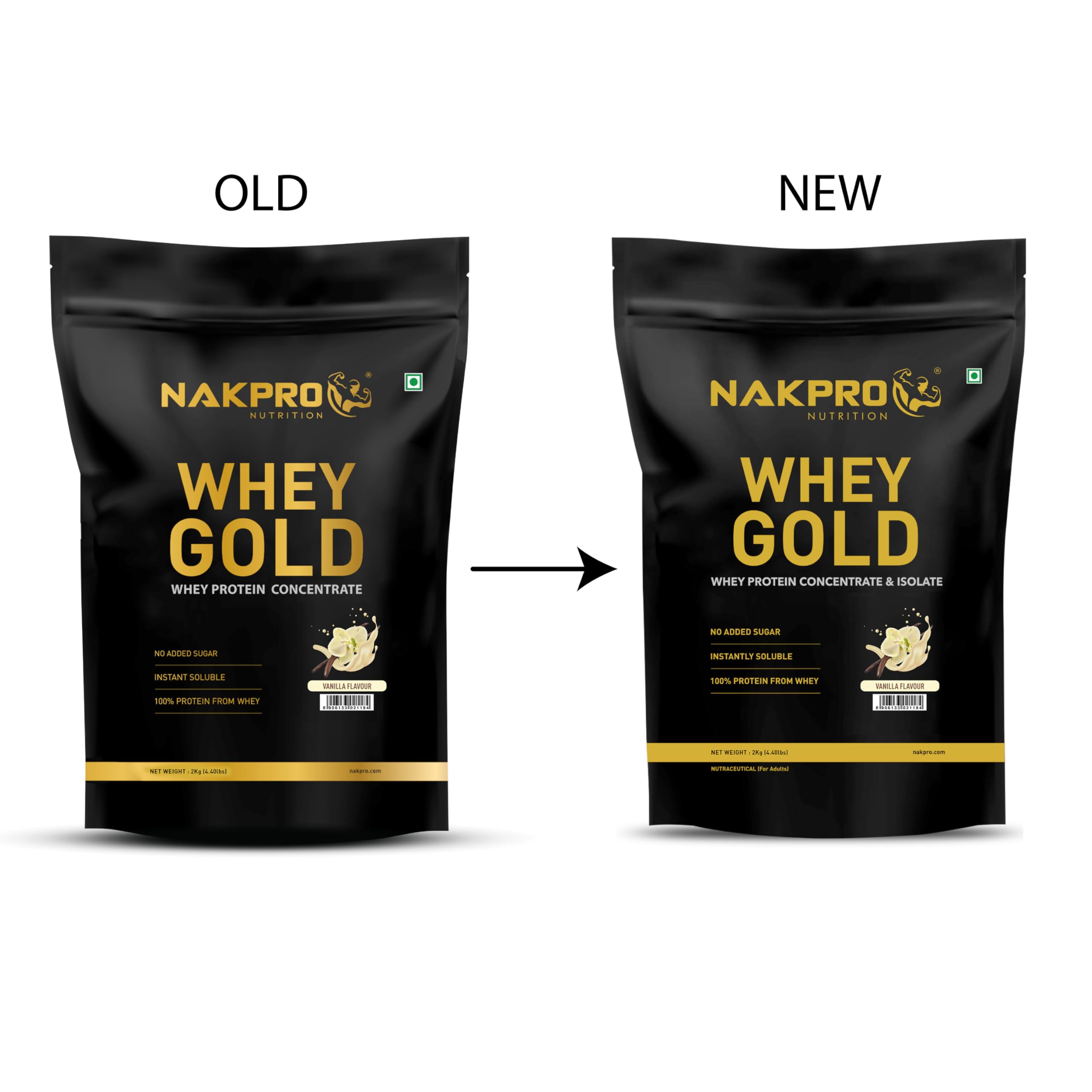 NAKPRO Gold Whey Protein Concentrate & Isolate 2kg Vanilla | 25.5g Protein, Trustified Certified Supplement Powder | Fast Absorbing Whey Protein Powder