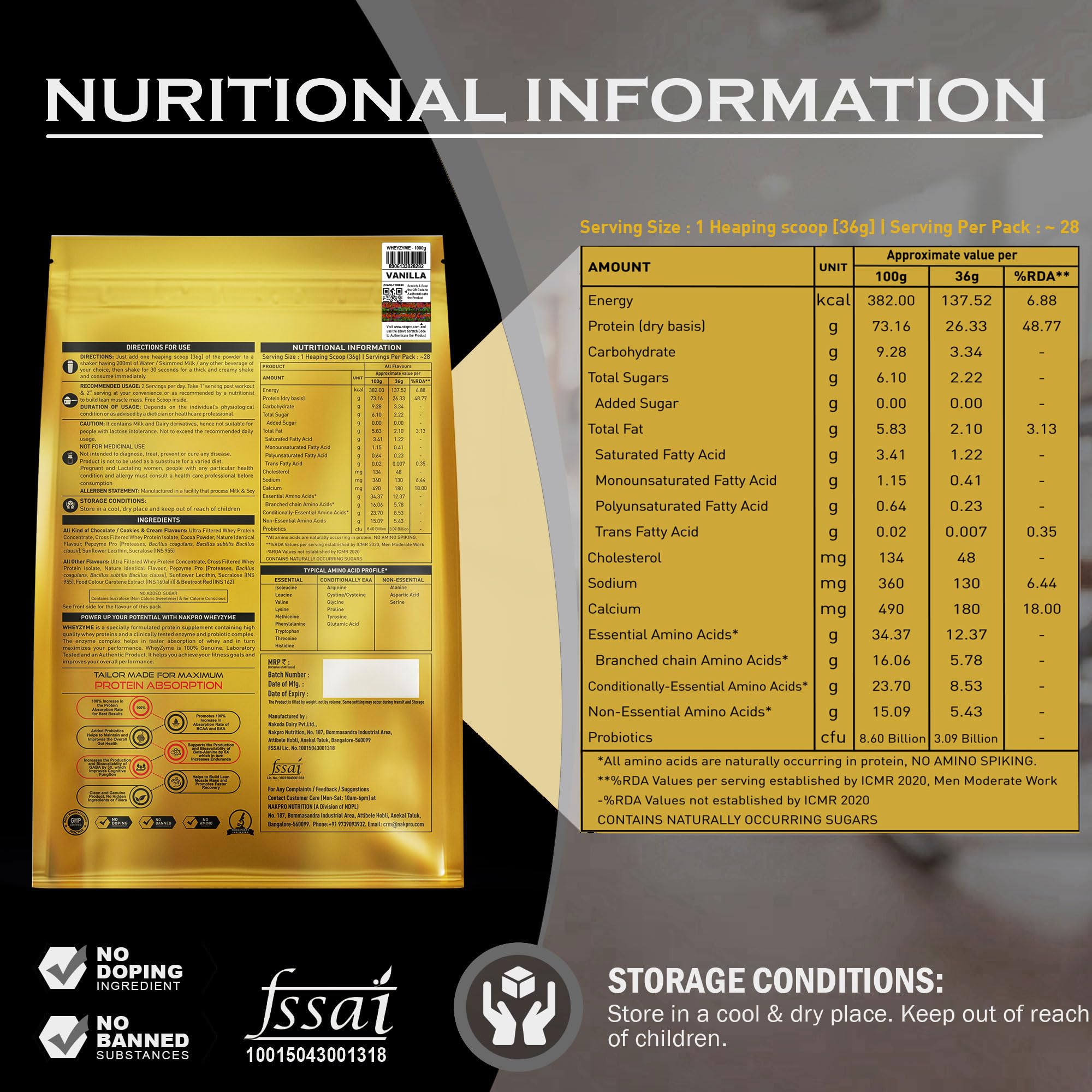 NAKPRO WheyZyme Whey Protein Powder, Informed Choice | Isolate & Concentrate, Clinally Tested 1% Higher Protein Absorptio (1kg, Vanilla)