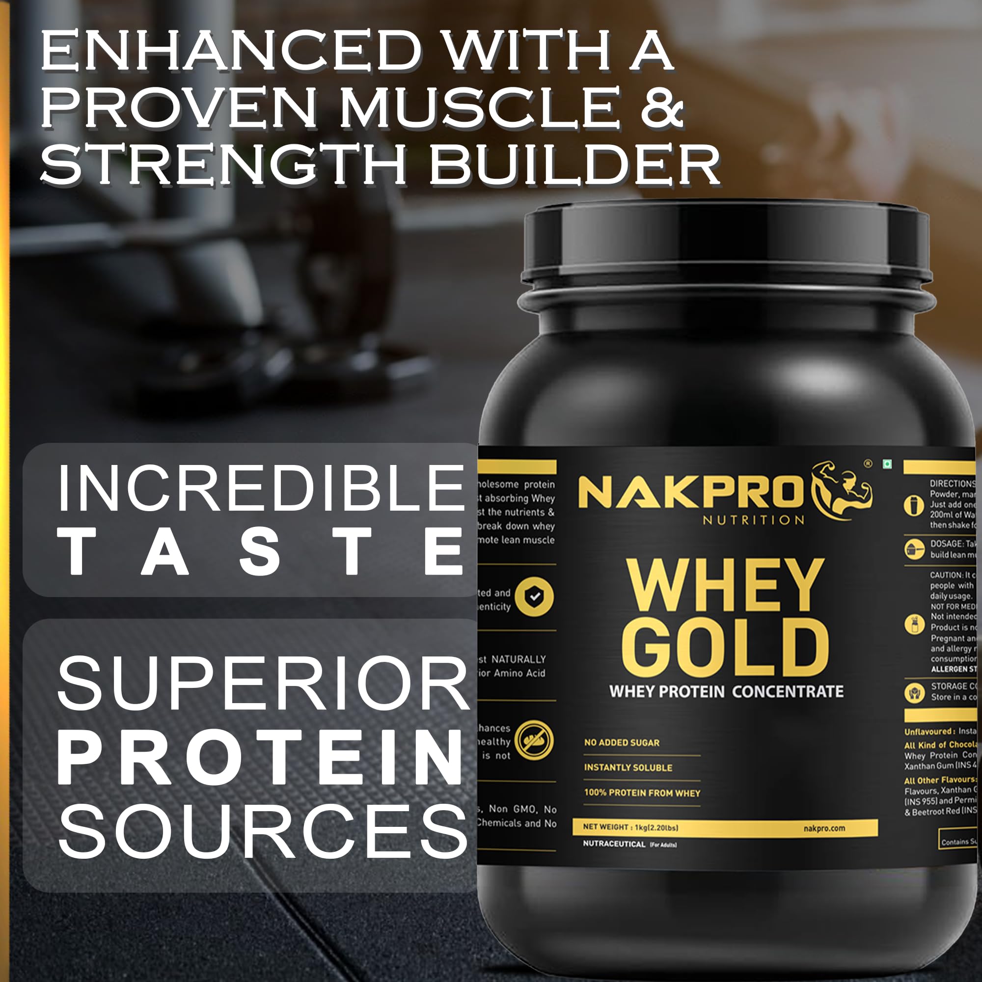 NAKPRO Gold Whey Protein Concentrate 1kg Chocolate, Jar | 25.5g Protein, 5.6g BCAA | Trustified Certified 1% Authentic Supplement Powder & No Adulteration | Fast Absorbing Whey Protein Powder