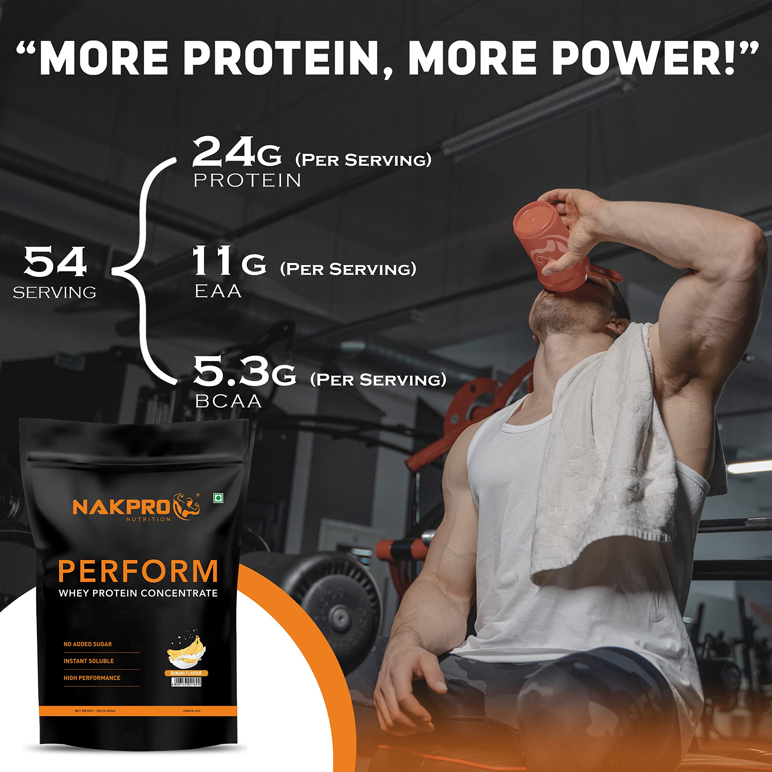 NAKPRO Perform Whey Protein Concentrate 2kg Banana | 24g Protein, 5.3g BCAA | Trustified Certified 1% Authentic Supplement Powder & No Adulteration | Fast Absorbing Whey Protein Powder
