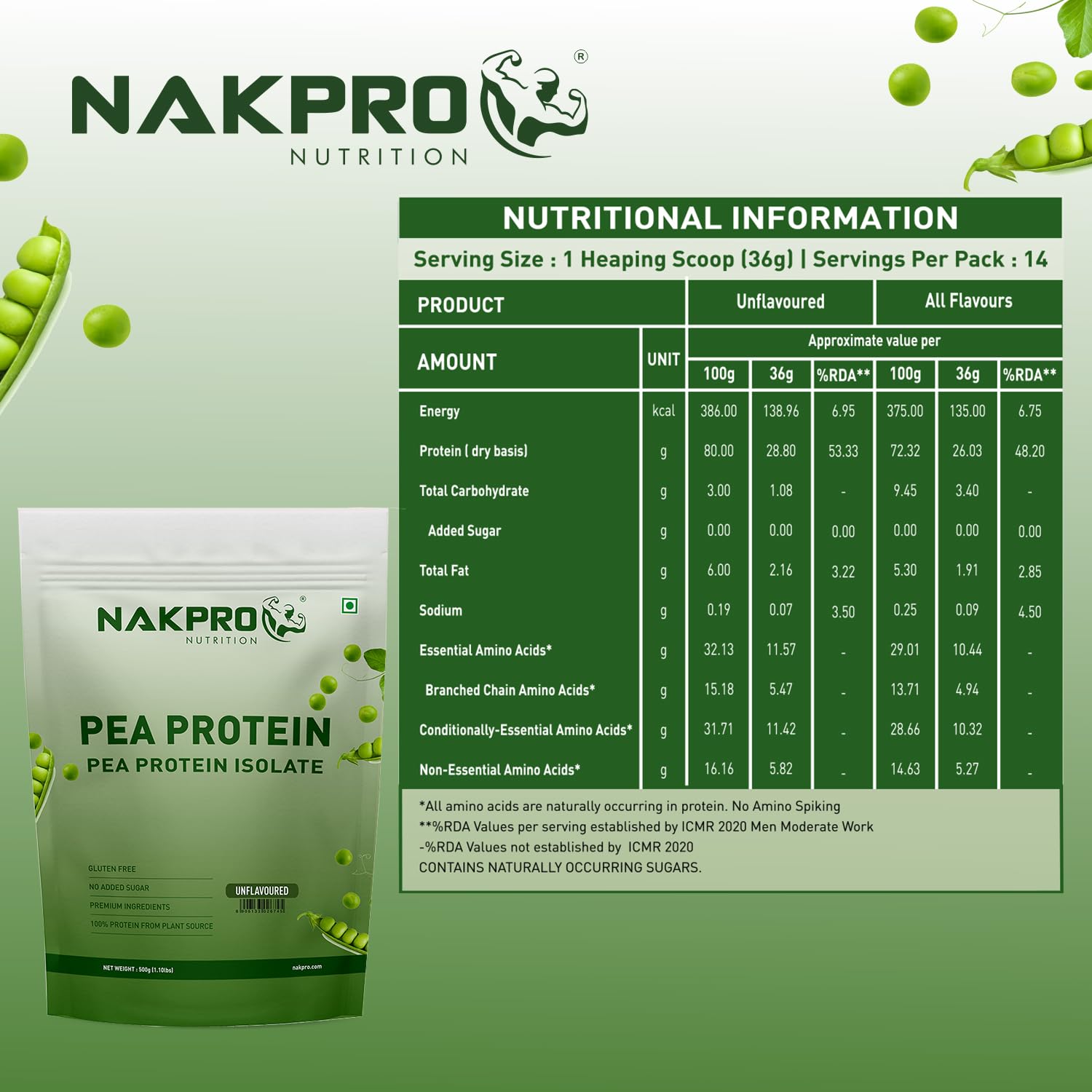 NAKPRO 1% Pea Protein Isolate, Unflavoured - 5g | 28.8g Protein, 5.5g BCAA | Natural Vegan Plant Protein Powder | Easy To Digest | All Essential Amino Acids for Muscle Gain and Recovery