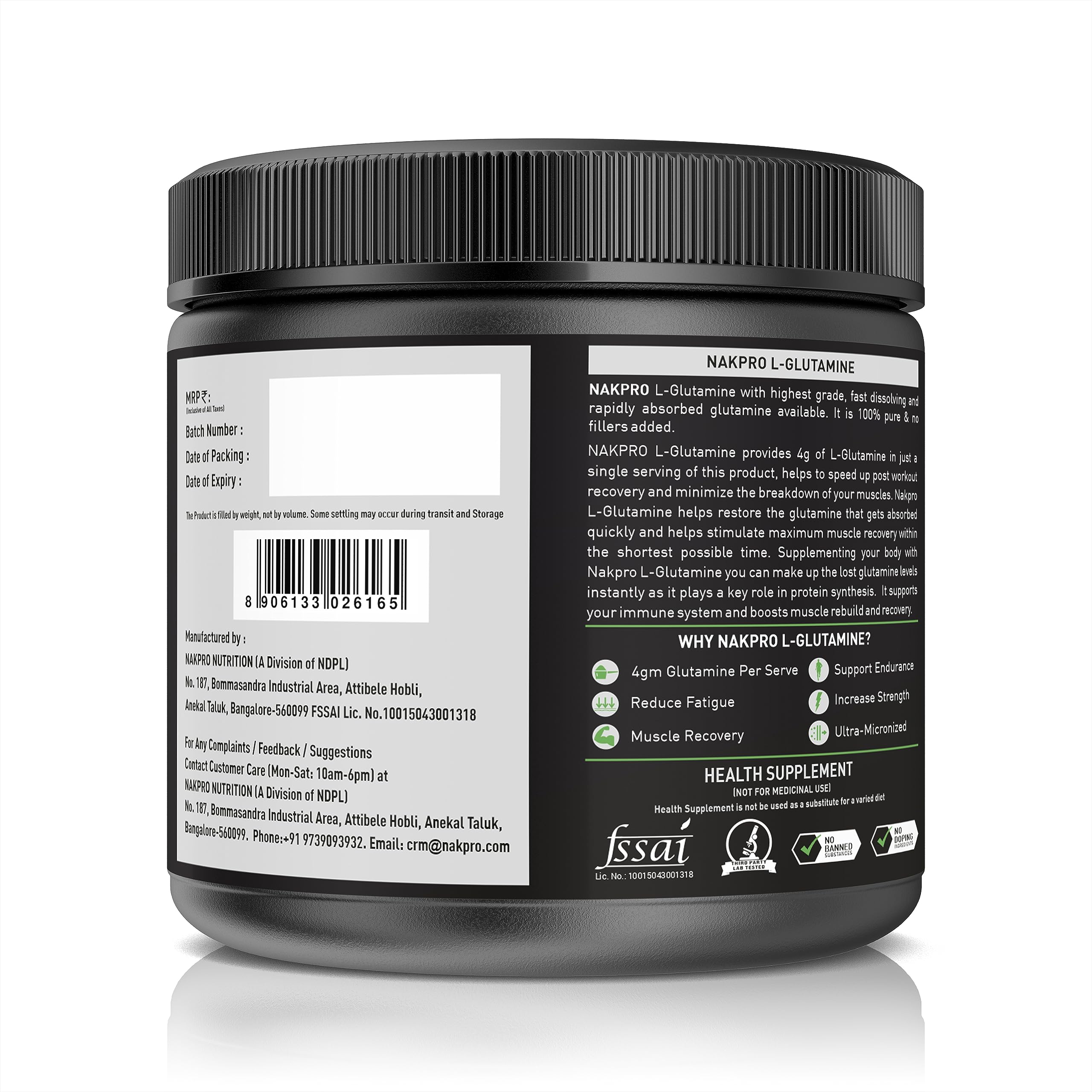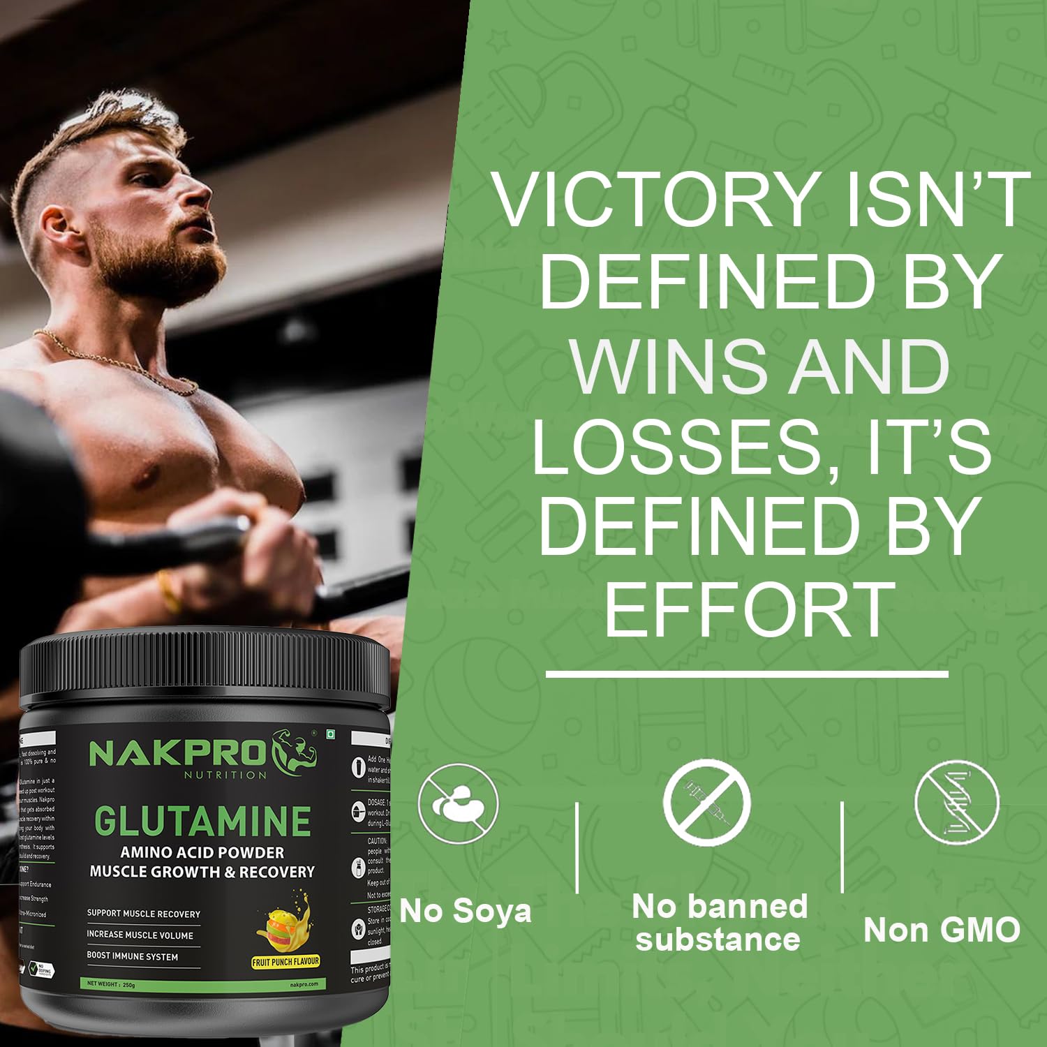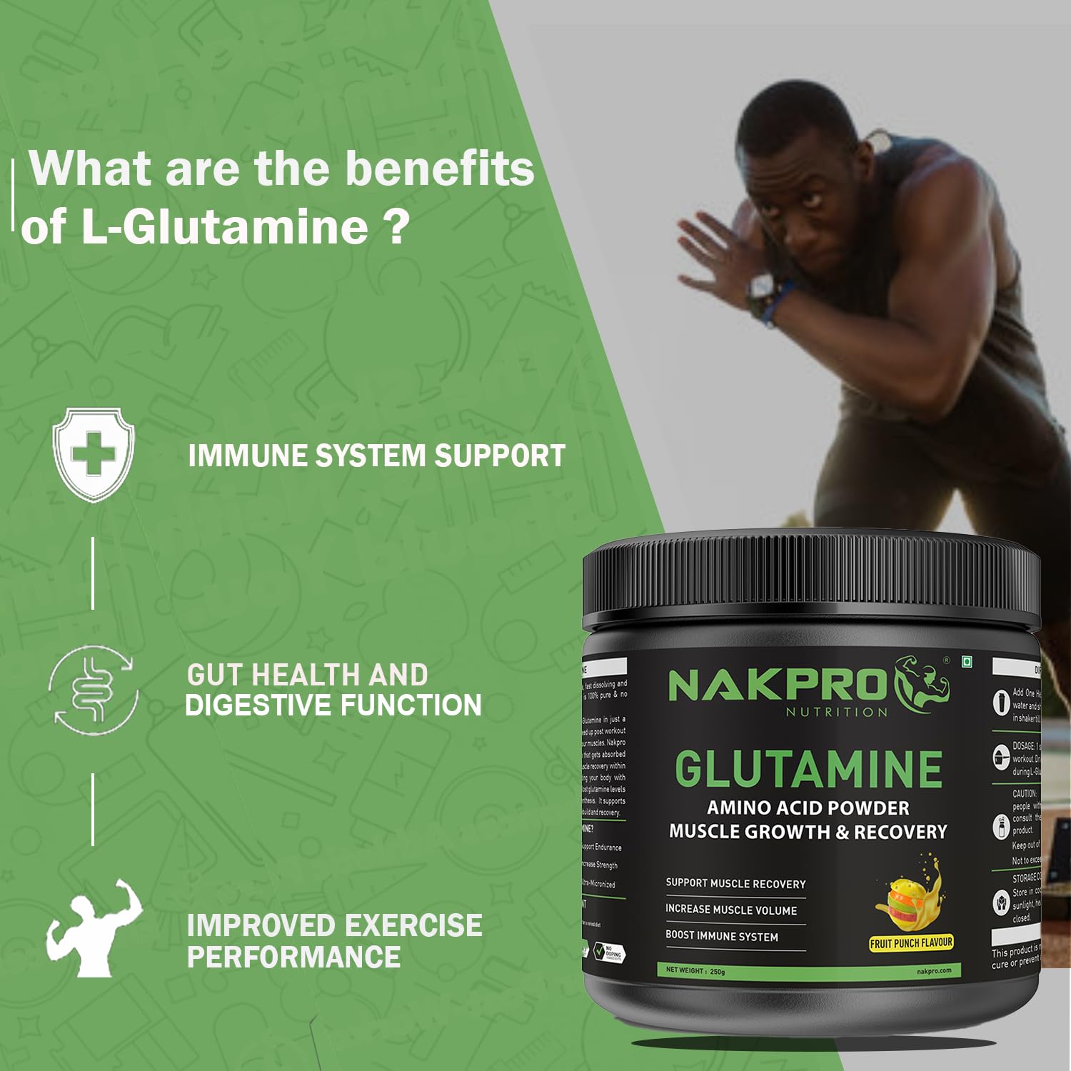 Nakpro L-Glutamine Powder - JAR | 4g Glutamine Per Serving, 5 Servings | Post Workout Amino Acid Protein Supplement for Muscle Growth and Recovery (Fruit Punch, 25g)