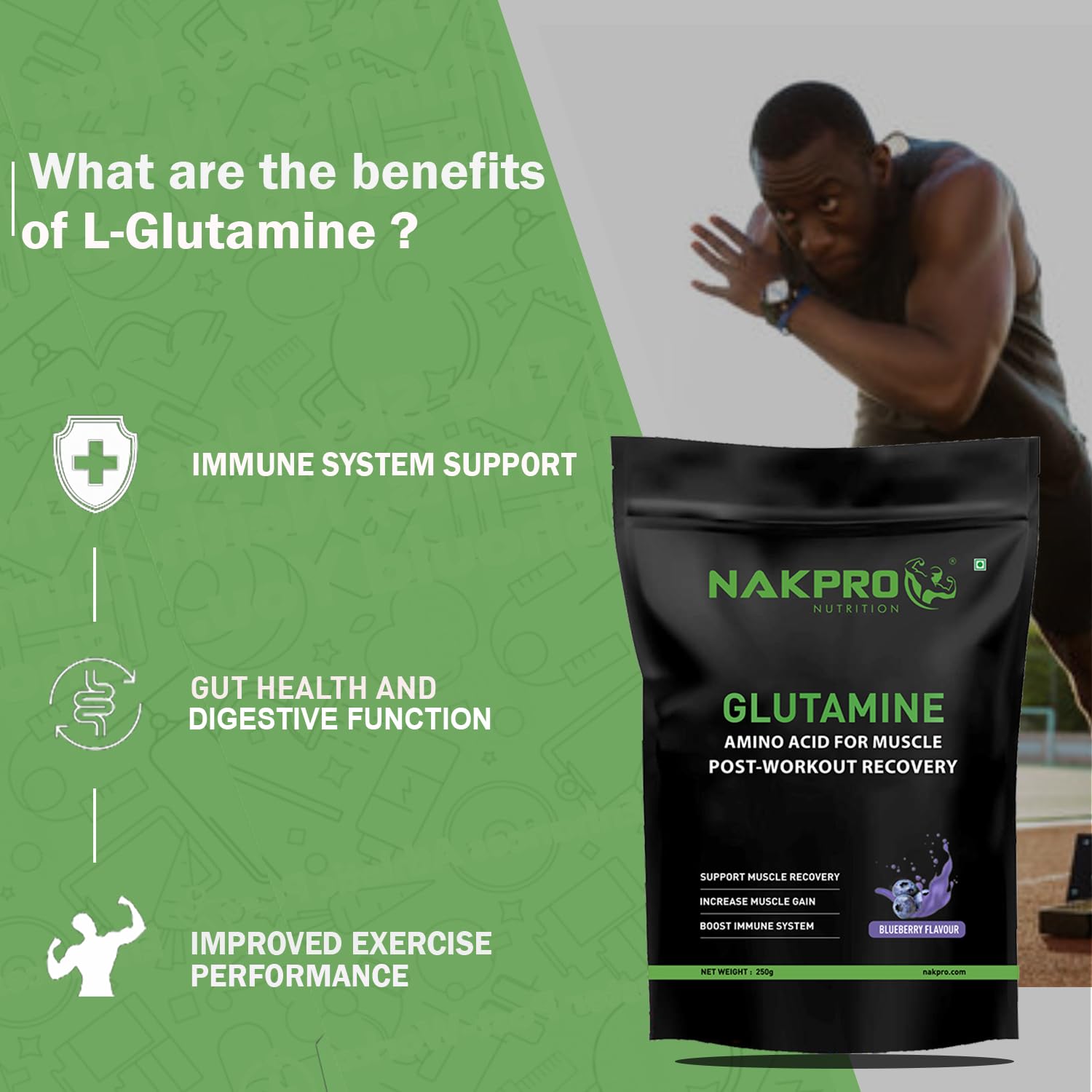 Nakpro L-Glutamine Powder | 4g Glutamine Per Serving, 5 Servings | Post Workout Amino Acid Supplement for Muscle Growth and Recovery (Blueberry, 25g)