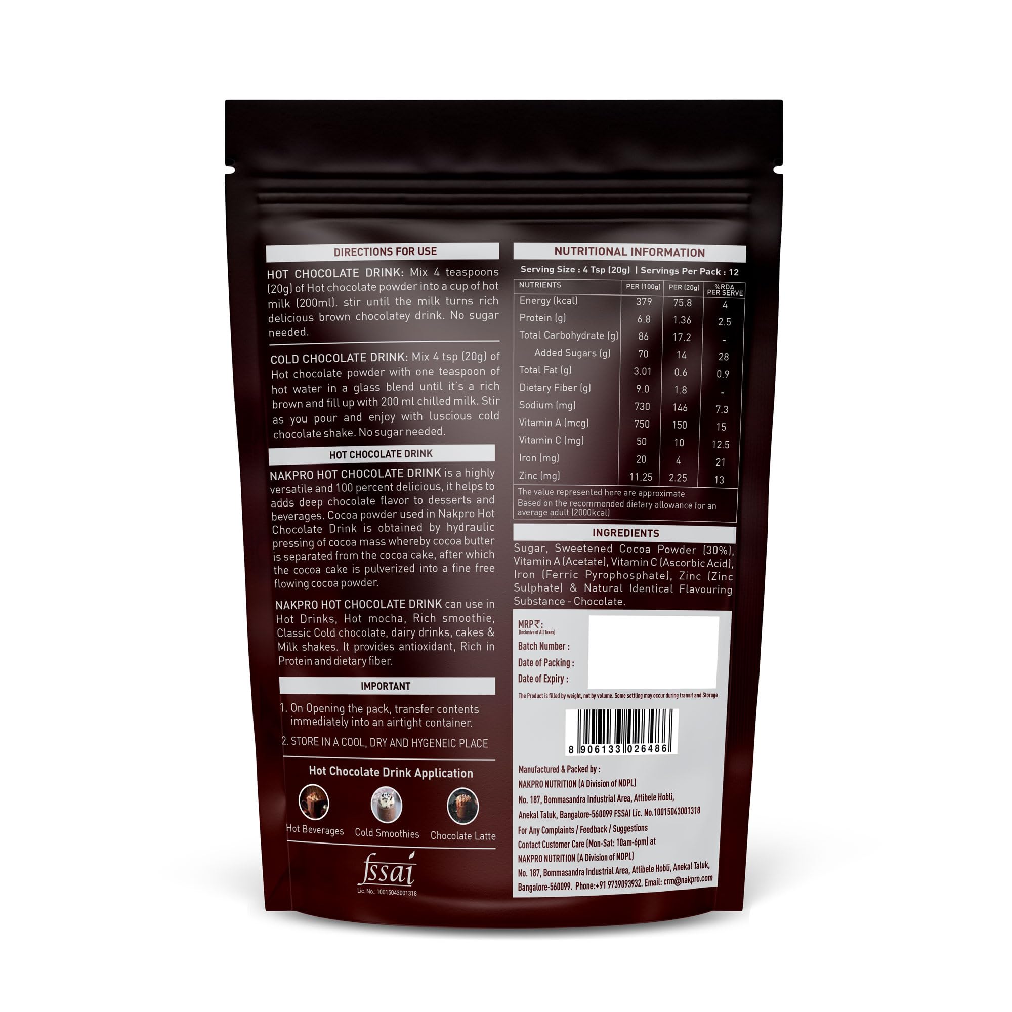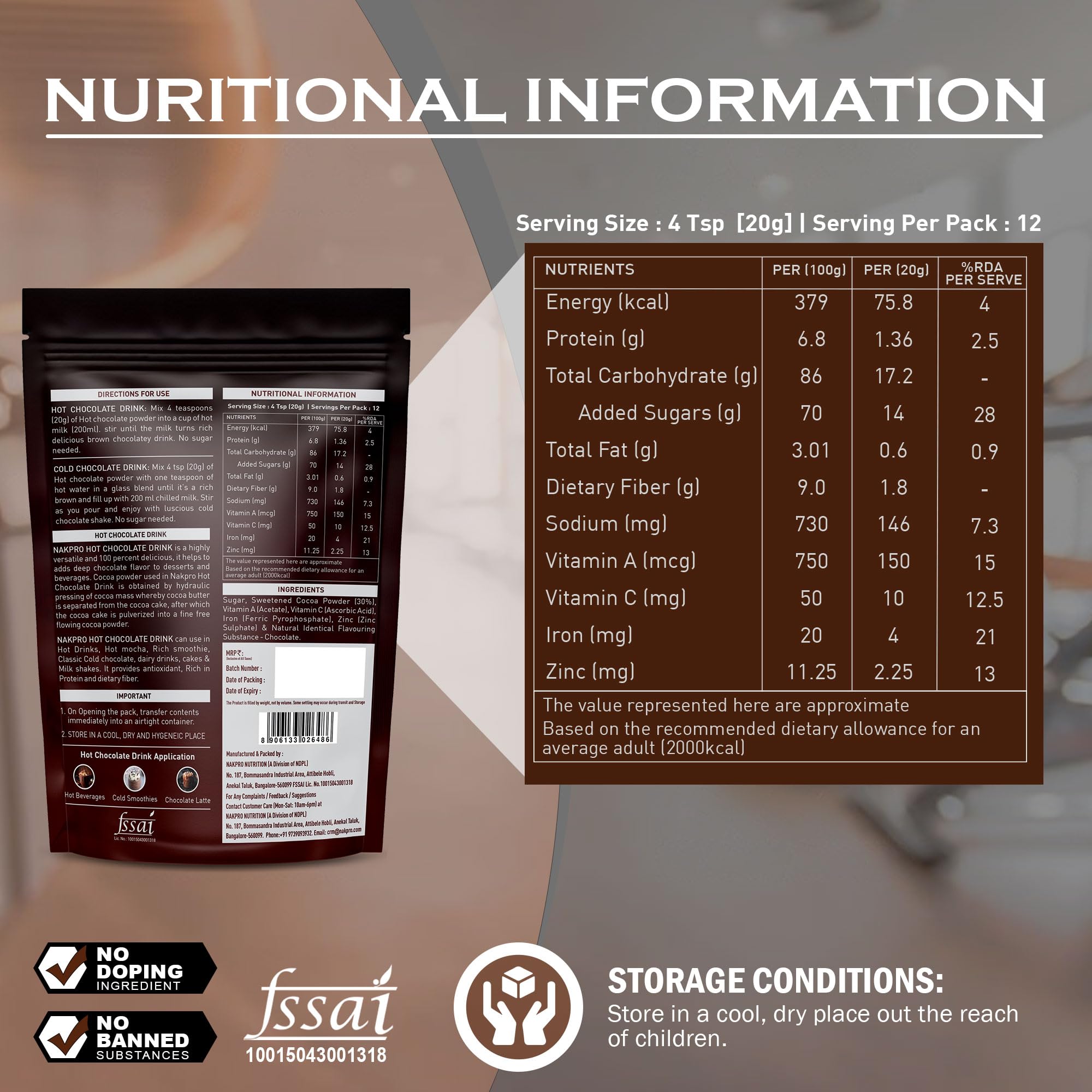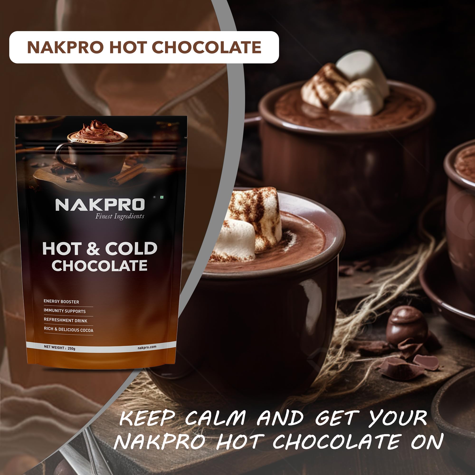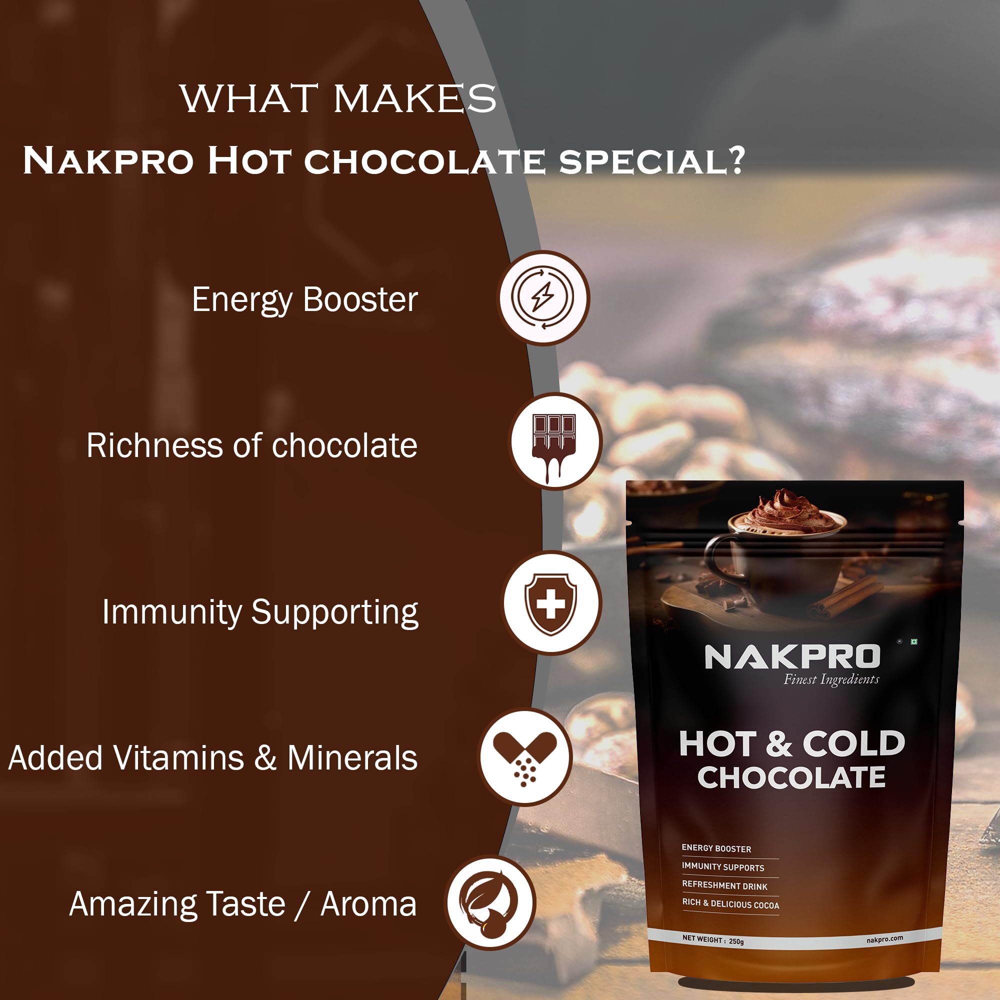 NAKPRO Hot & Cold Chocolate Drink Powder Mix, 25g | No Preservatives, Added Vitamins & Minerals for Immunity Support | Vegan & Gluten Free | Thick & Chocolatey Drink