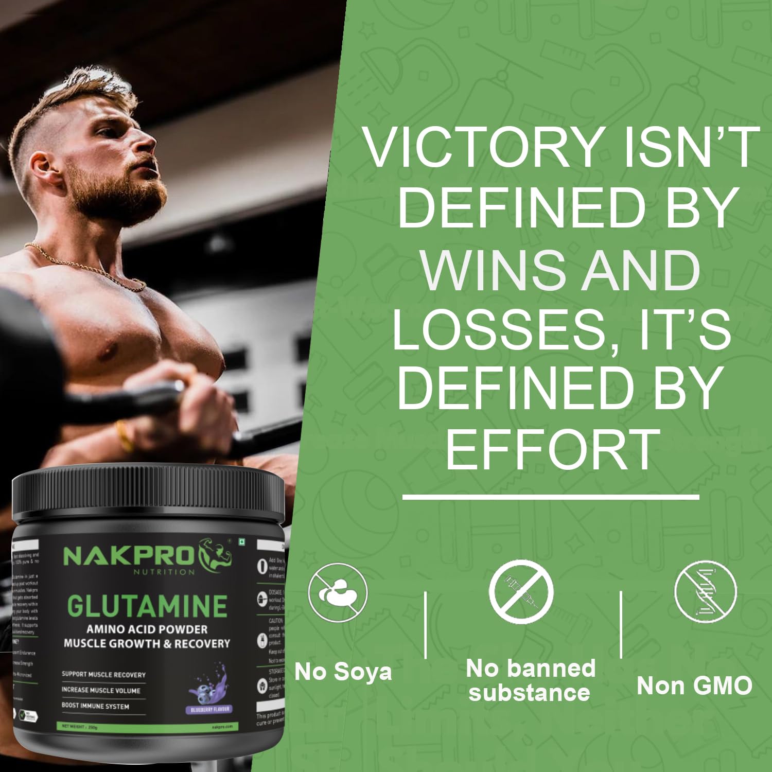 Nakpro L-Glutamine Powder - JAR | 4g Glutamine Per Serving, 5 Servings | Post Workout Amino Acid Protein Supplement for Muscle Growth and Recovery (Blueberry, 25g)