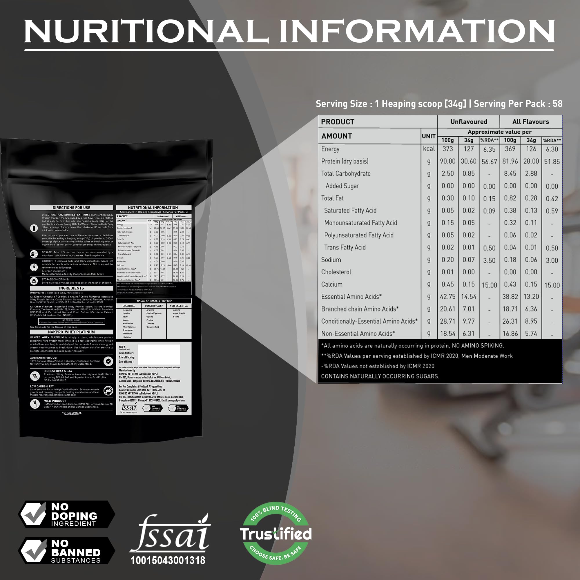 NAKPRO Platinum 1% Clean Raw Whey Protein Isolate, 2kg Unflavoured | 31g Protein, Trustified Certified & No Adulteration | Fast Absorbing Whey Protein Powder