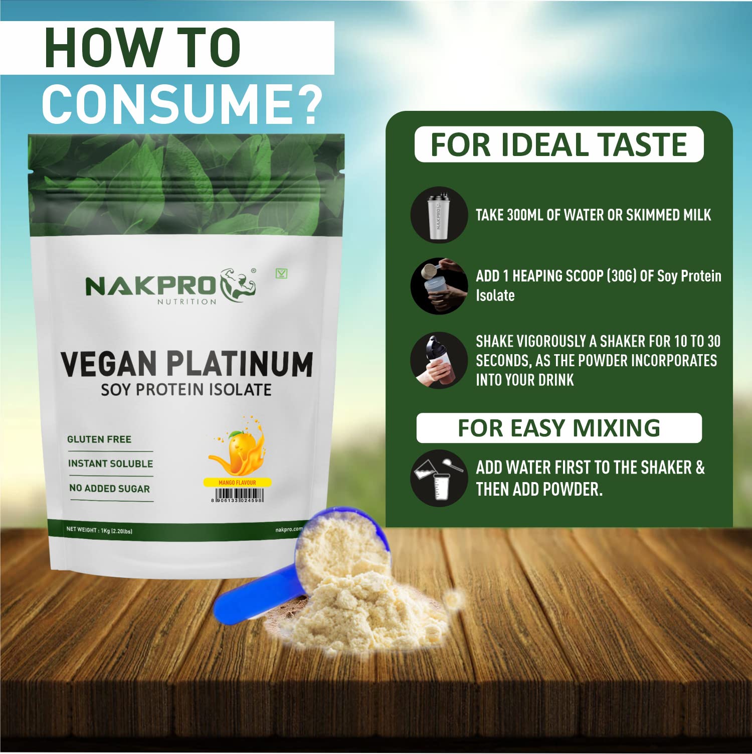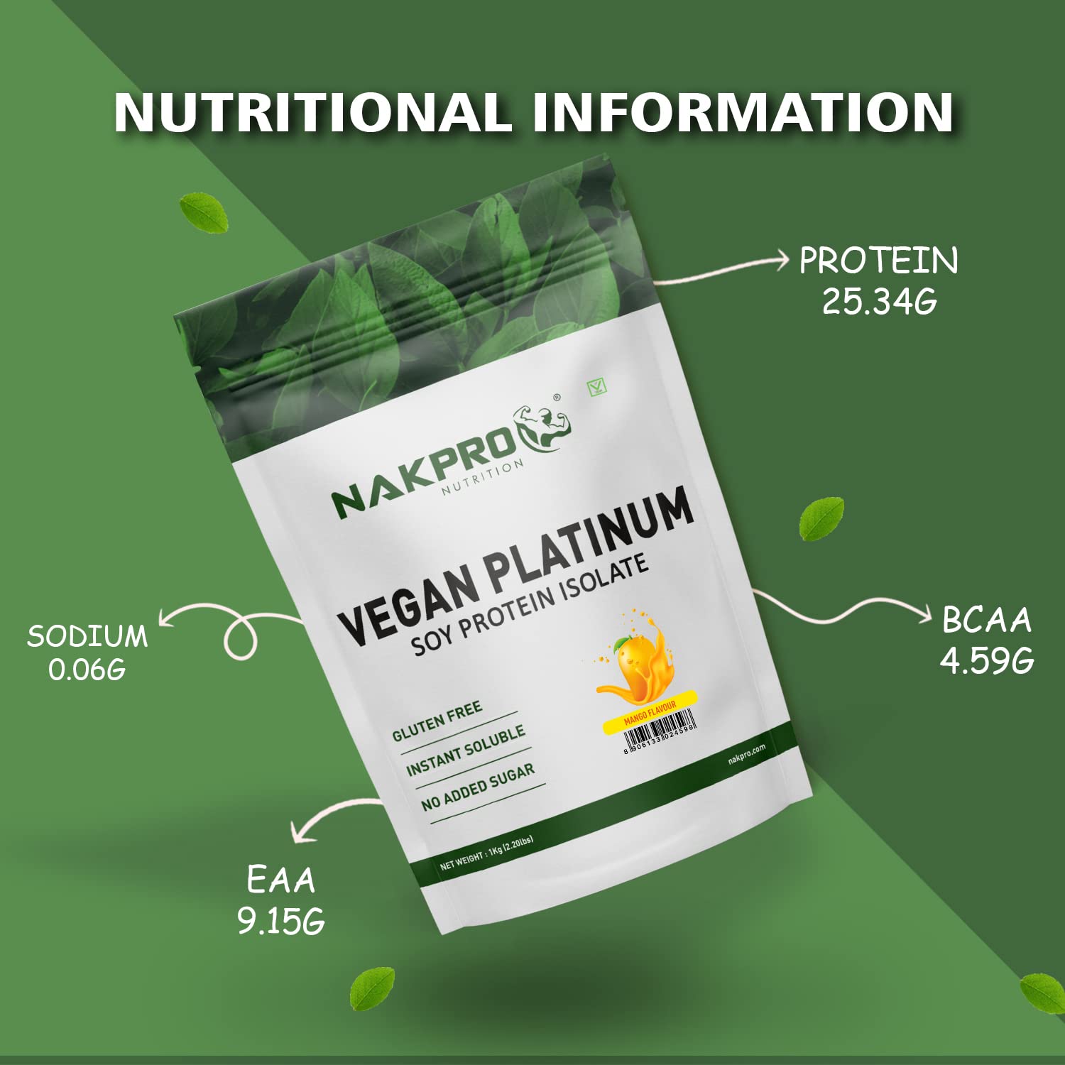 NAKPRO 1% Soy Protein Isolate, Mango - 1kg | 25.3g Protein, 4.6g BCAA | Natural Vegan Plant Protein Powder | Easy To Digest | All Essential Amino Acids for Muscle Gain and Recovery