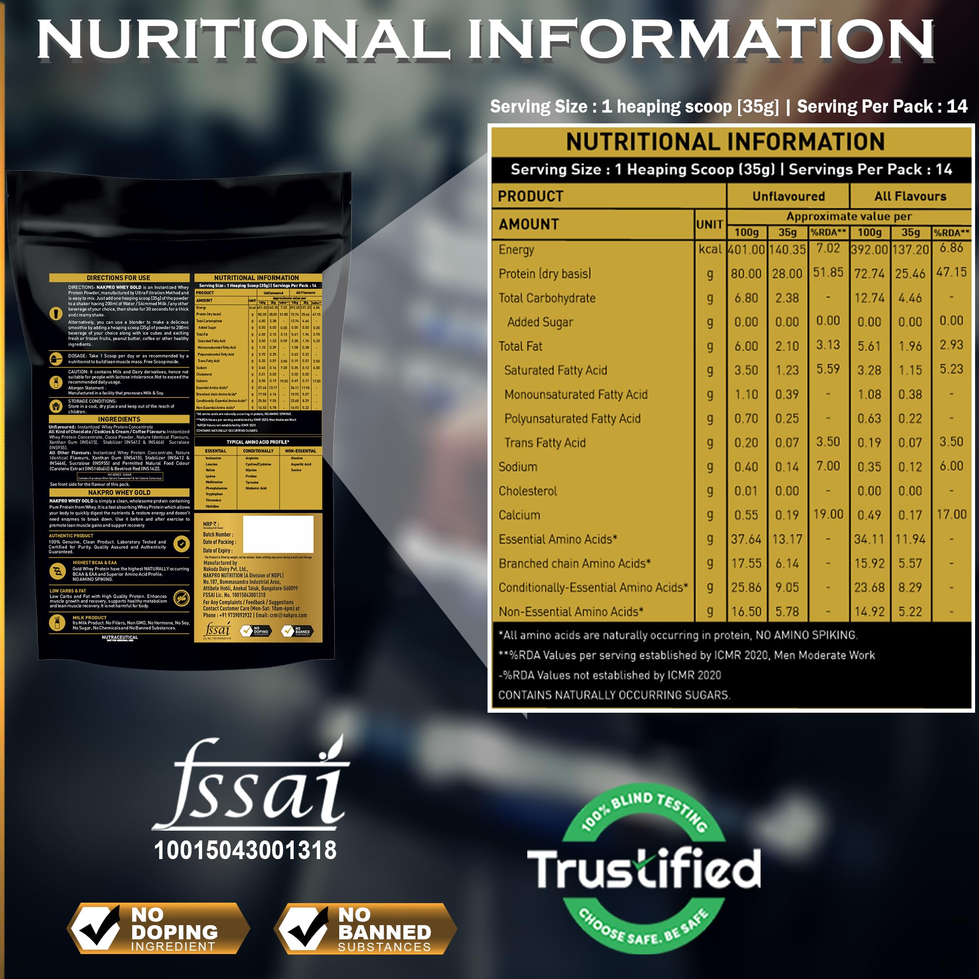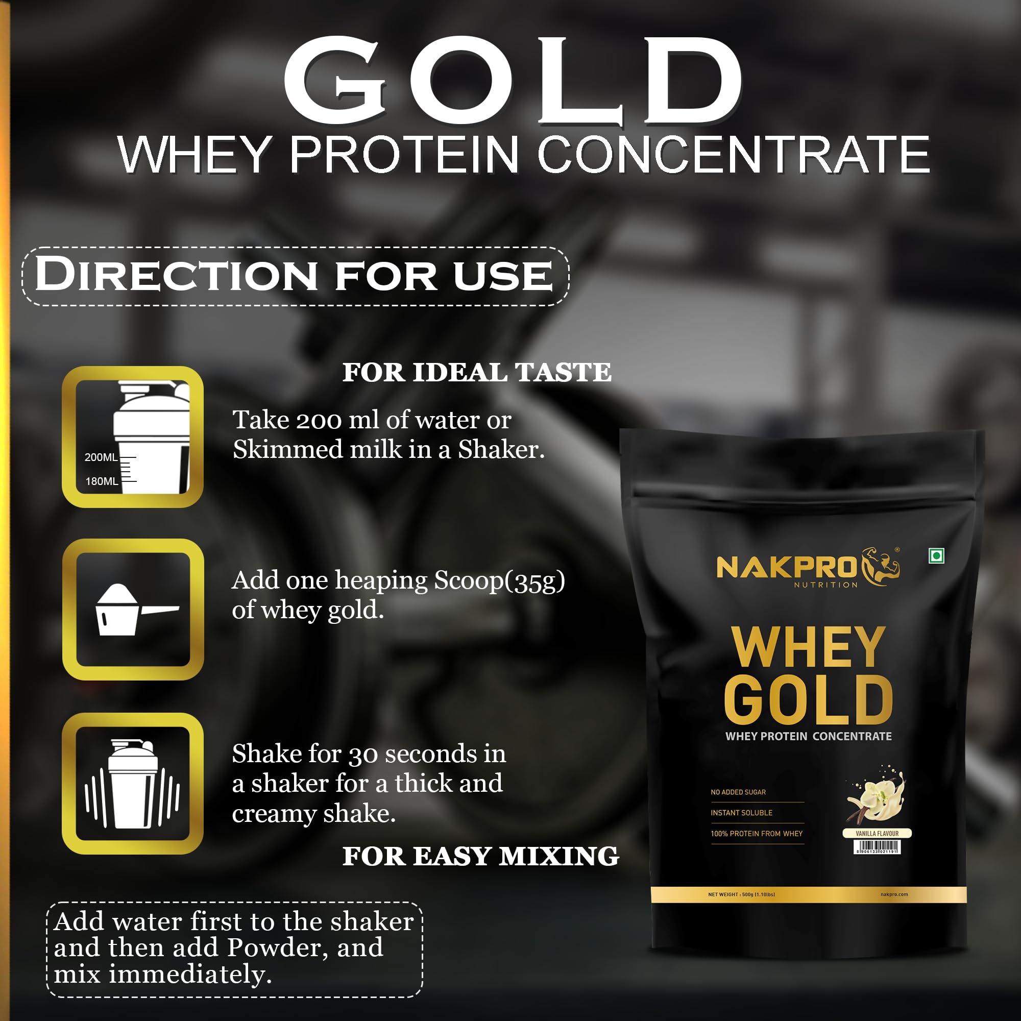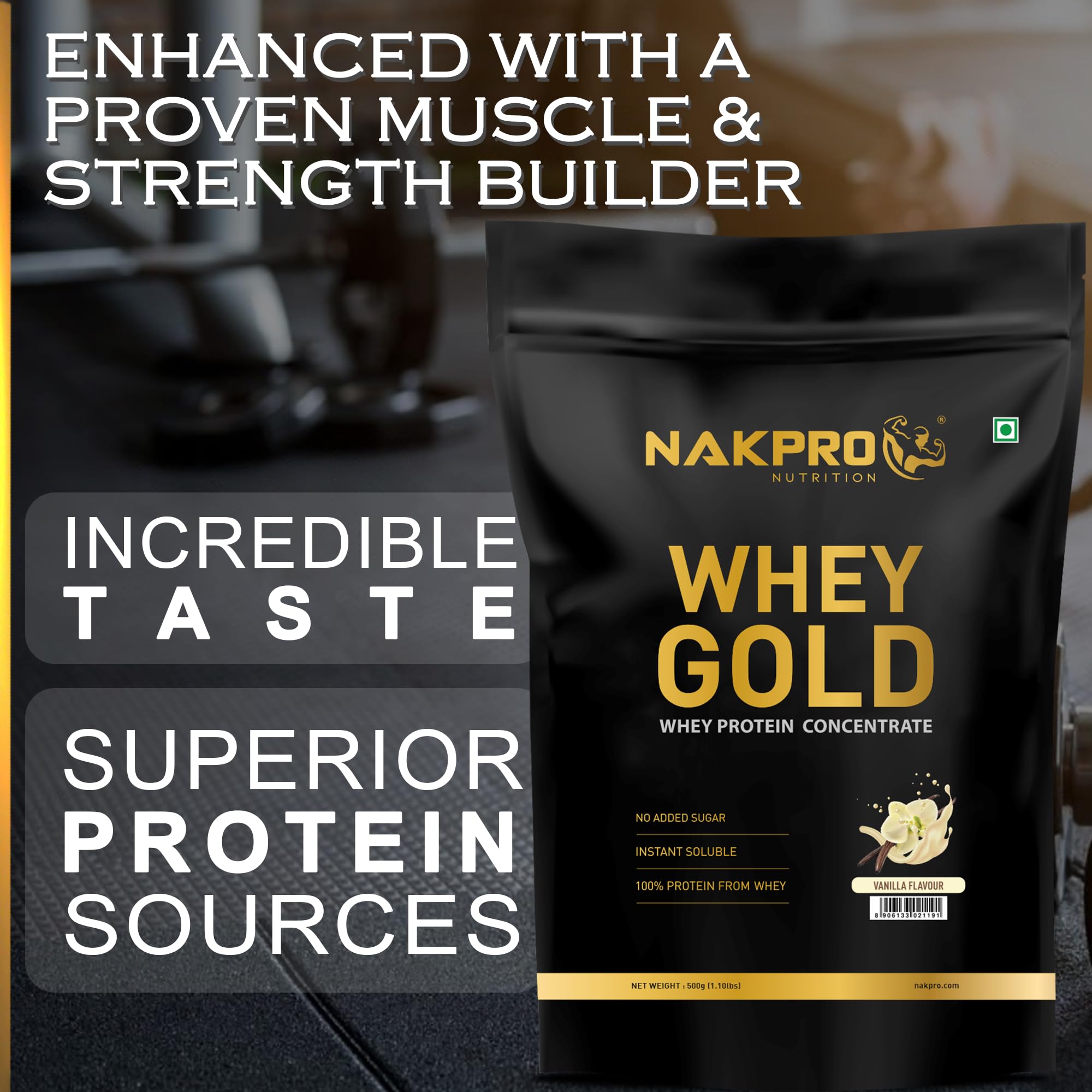 NAKPRO Gold Whey Protein Concentrate 5g Vanilla | 25.5g Protein, Trustified Certified Supplement Powder | Fast Absorbing Whey Protein Powder