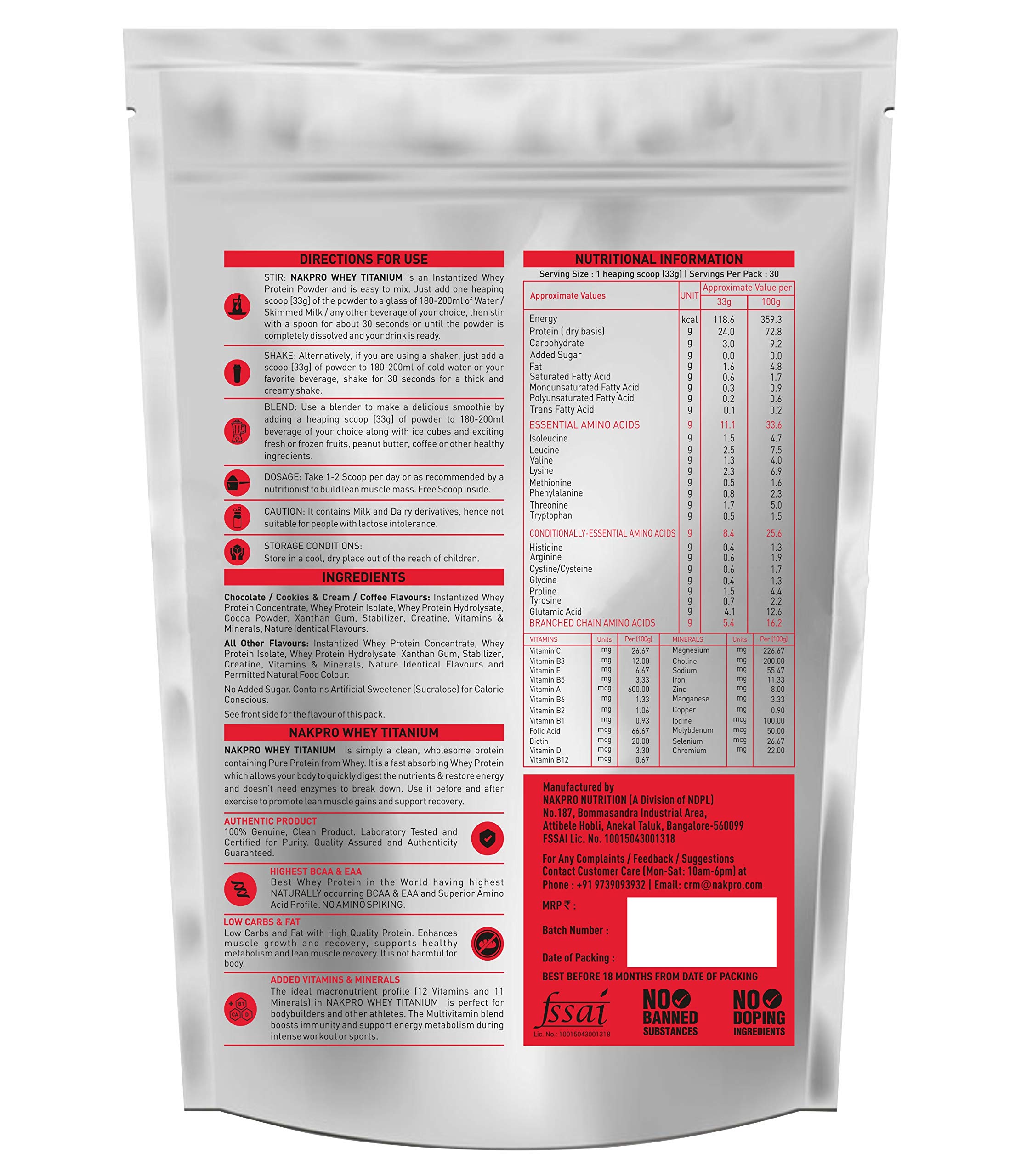 NAKPRO TITANIUM Tri Blend Whey Protein Hydrolyse, Isolate & Concentrate with Added Vitamins, Minerals & Creatine - 1 Kg Cookies