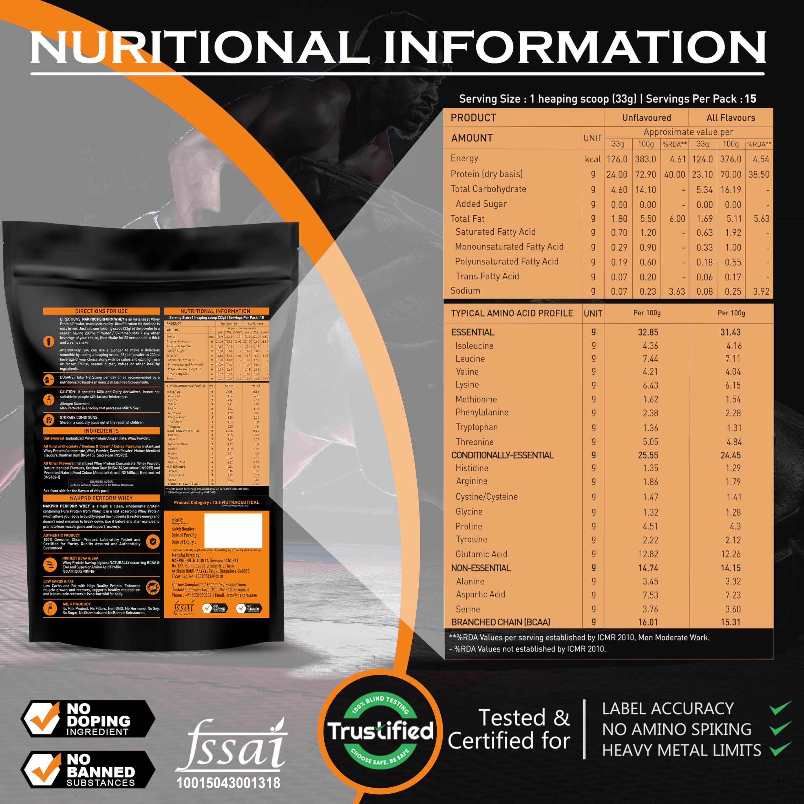 NAKPRO Perform Whey Protein Concentrate 5g Unflavoured | 24g Protein, 5.3g BCAA | Trustified Certified 1% Authentic Supplement Powder & No Adulteration | Fast Absorbing Whey Protein Powder