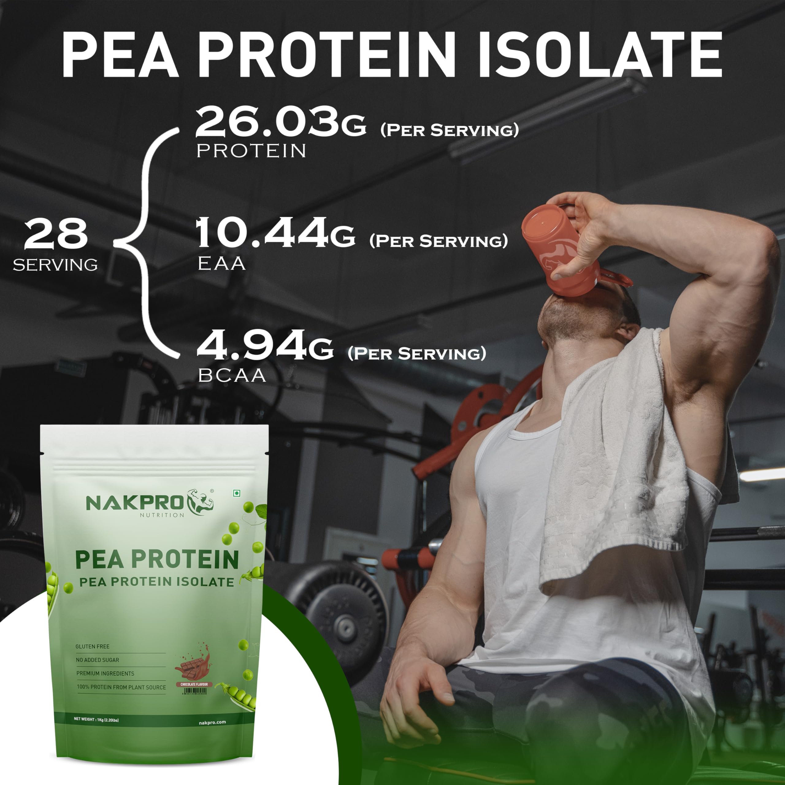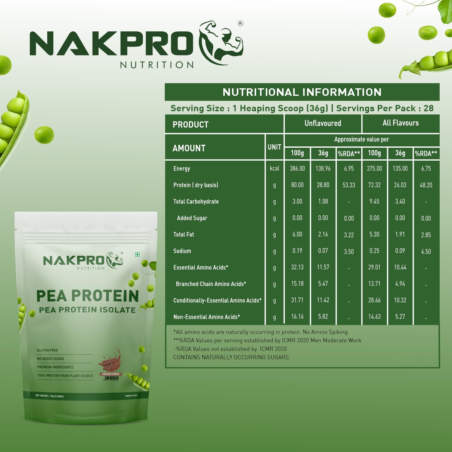 NAKPRO 1% Pea Protein Isolate, Chocolate - 2kg (1kg*2) | 26g Protein, 4.9g BCAA | Natural Vegan Plant Protein Powder | Easy to Digest | All Essential Amino Acids for Muscle Gain and Recovery