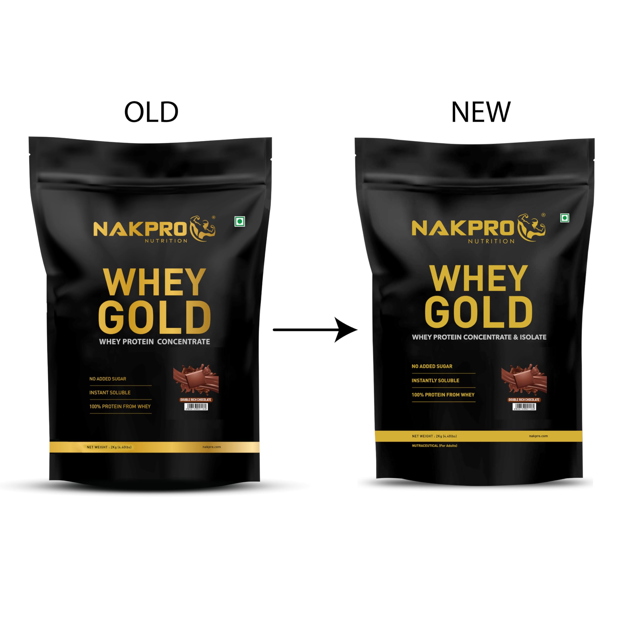 NAKPRO Gold Whey Protein Concentrate & Isolate 4kg Double Rich Chocolate | 25.5g Protein, Trustified Certified Supplement Powder | Fast Absorbing Whey Protein Powder
