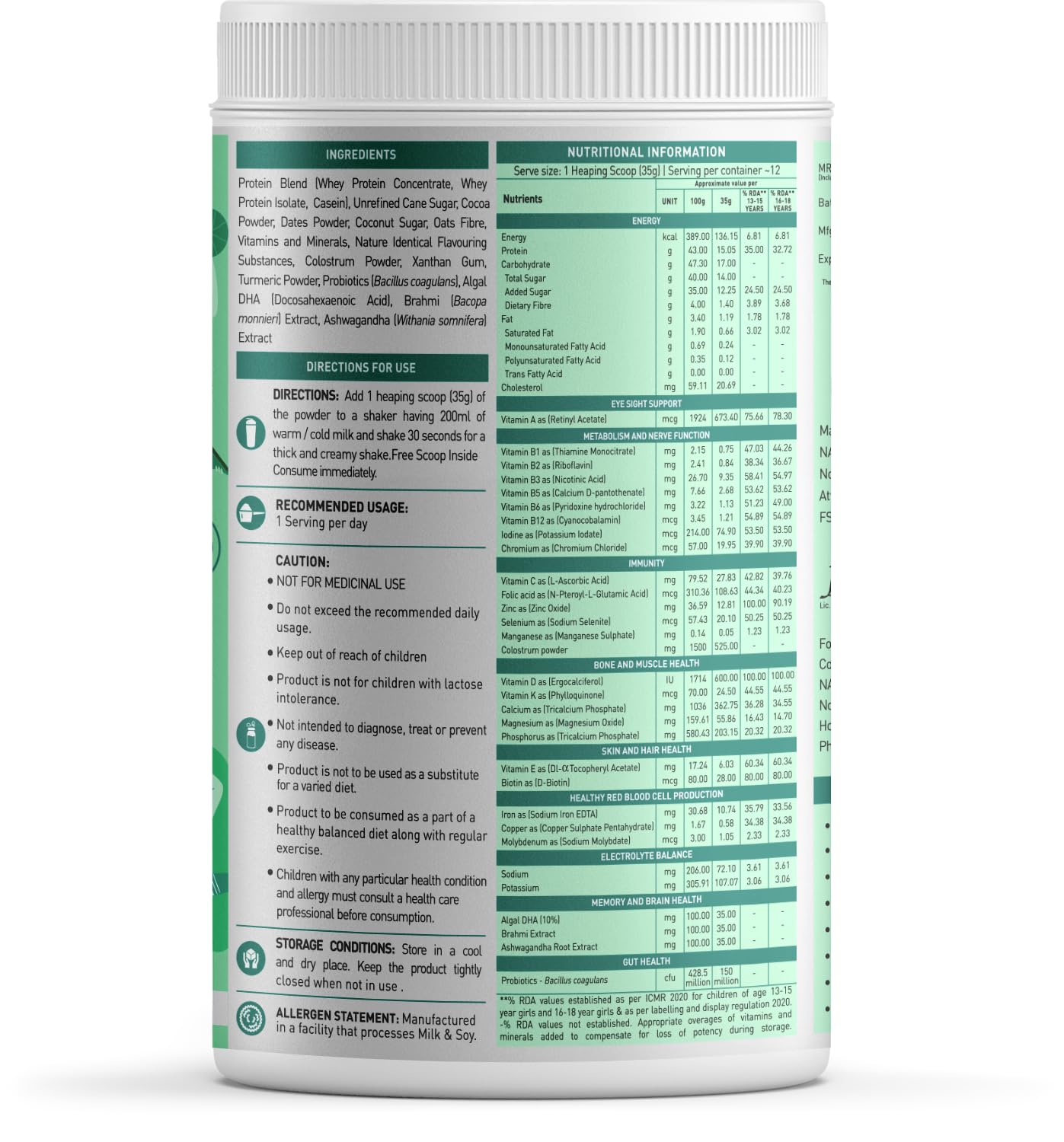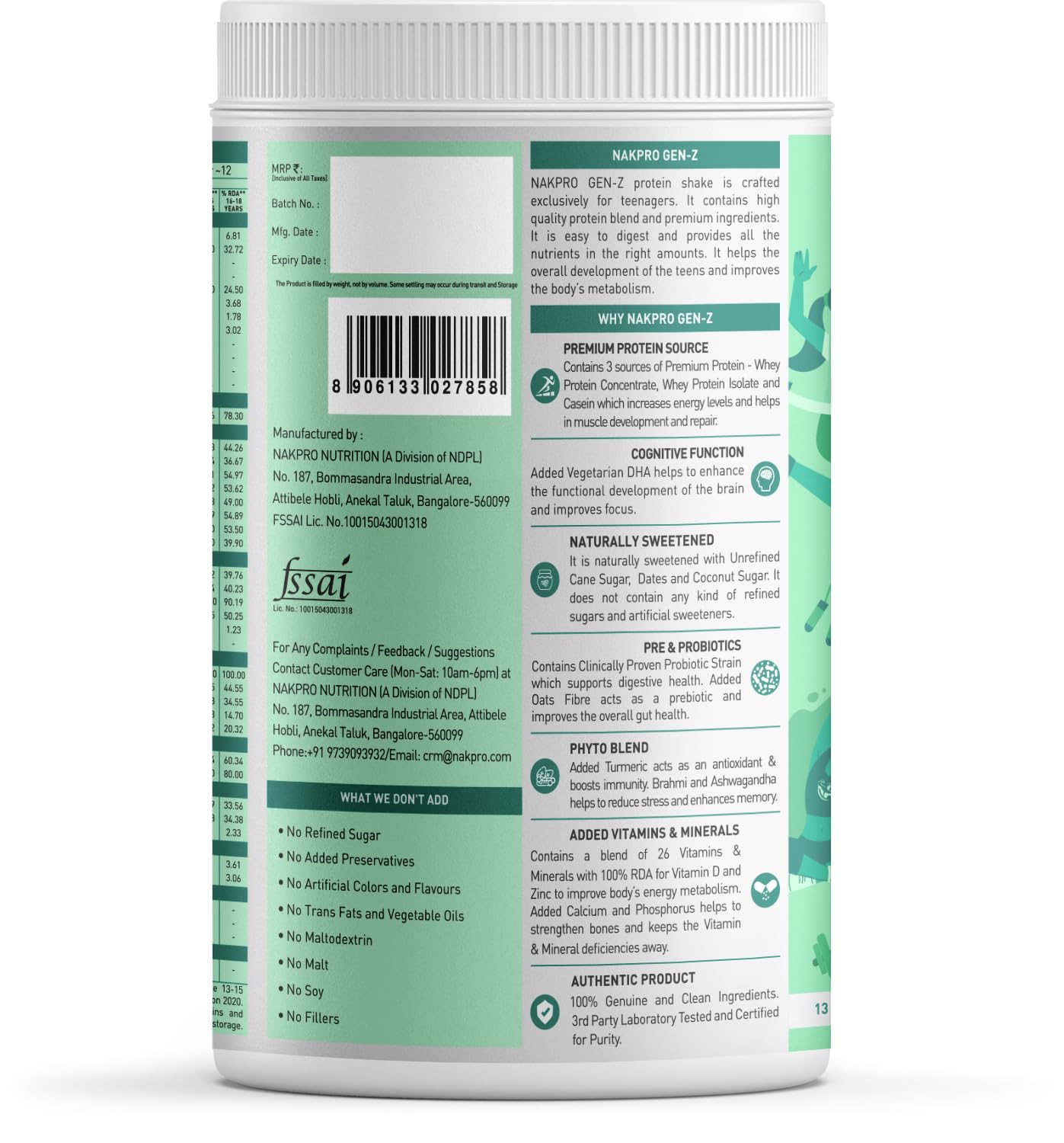 NAKPRO GenZ Protein Powder for Teens (13+), 15g Protein, Double Rich Chocolate - 4g | Vitamins & Minerals, Supports Immunity, Strong Bones & Height