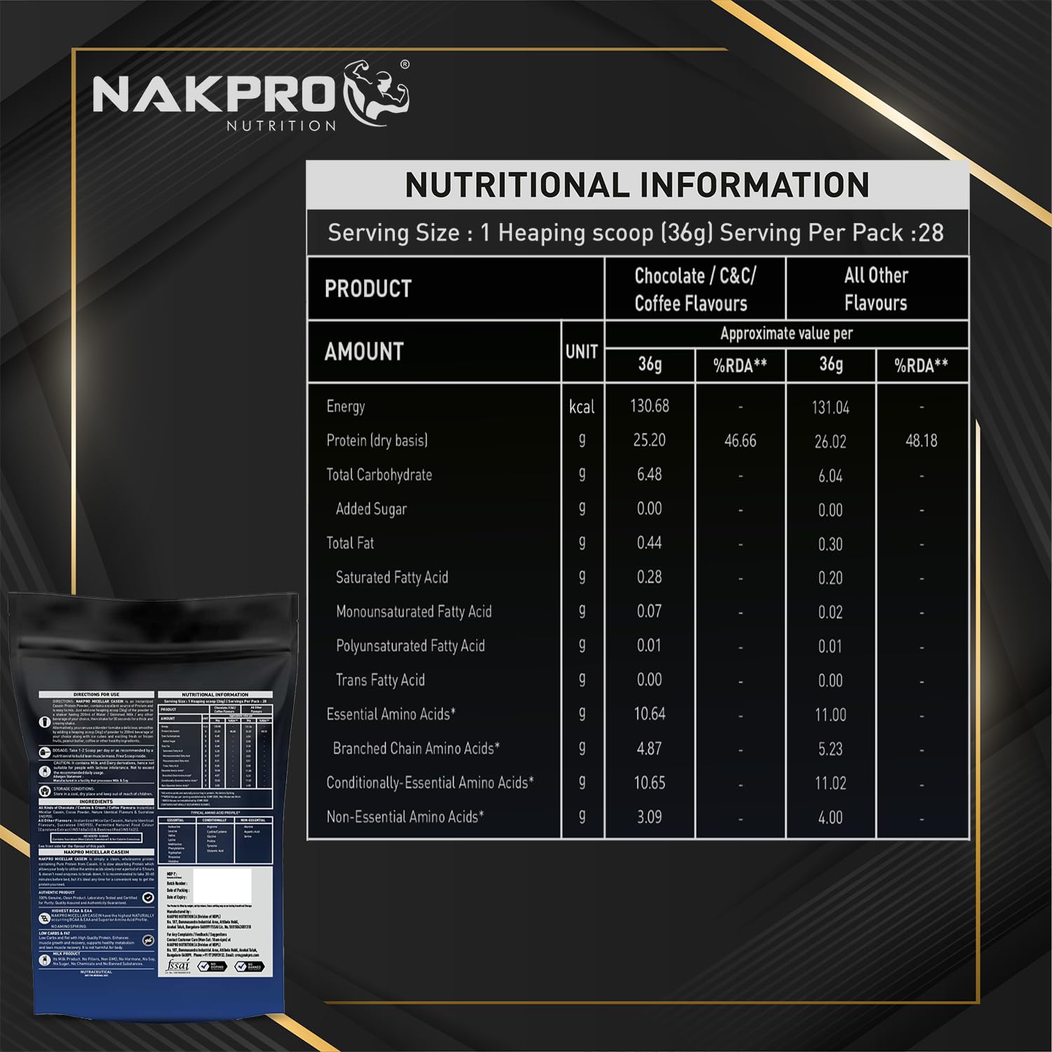 NAKPRO 1% Micellar Casein Protein Supplement |25g Protein, 9.91g EAAs, 4.83g BCAAs| Slow Absorbing Micellar Casein Protein Powder (Banana, 1 Kg)